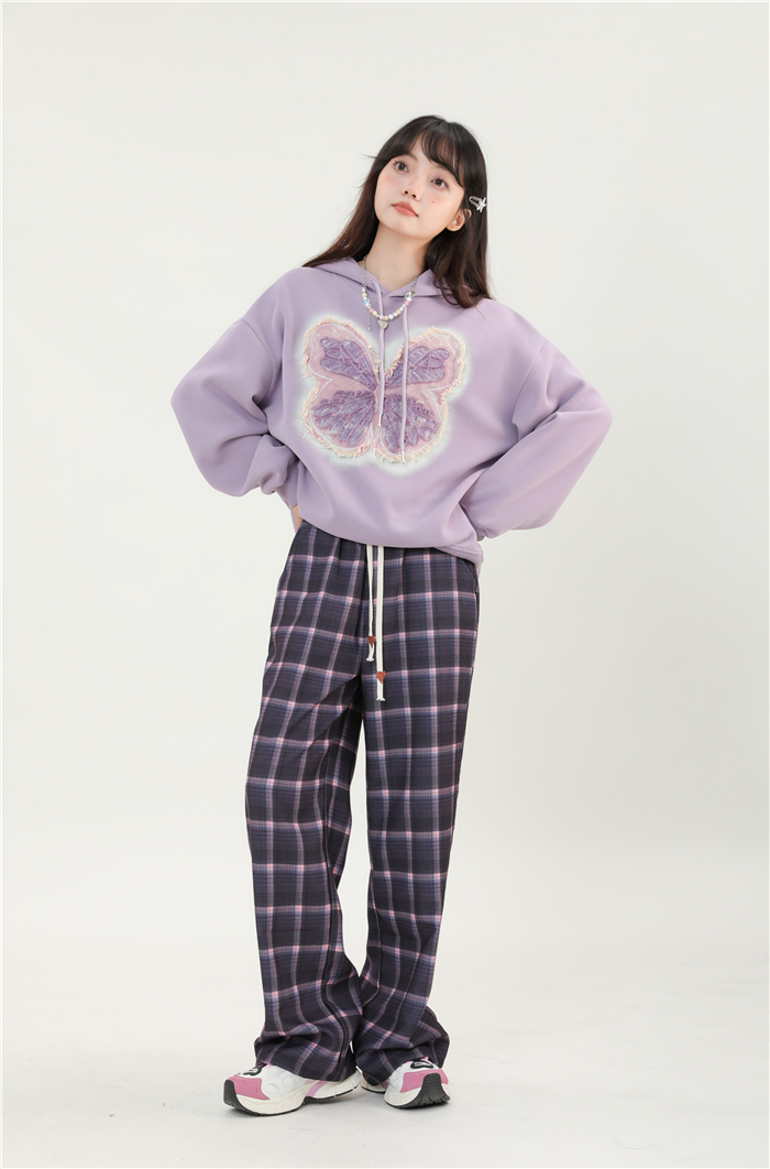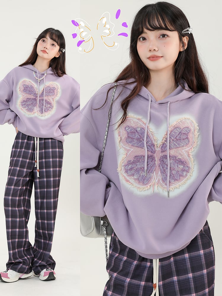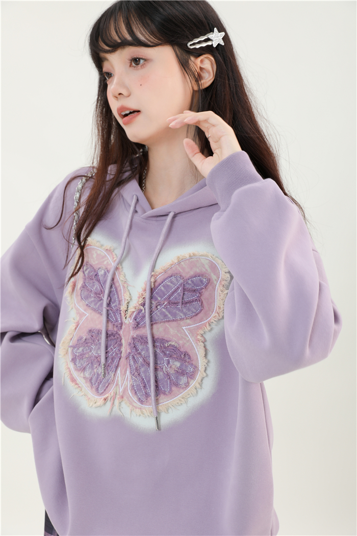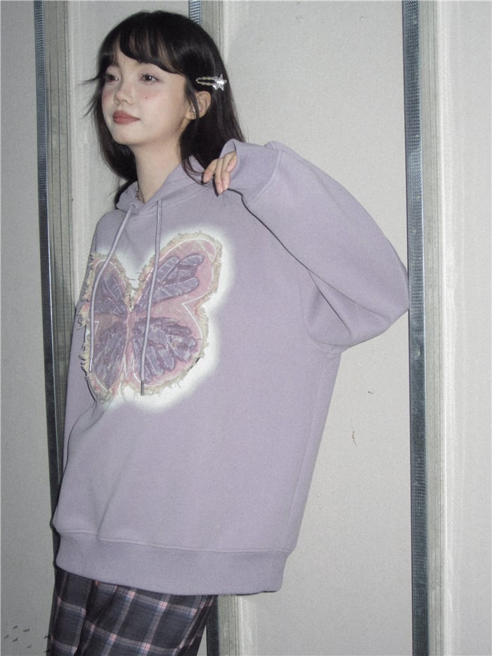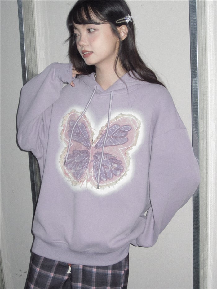 Autumn Winter Butterfly Purple Oversize Sweatshirt Hoodie