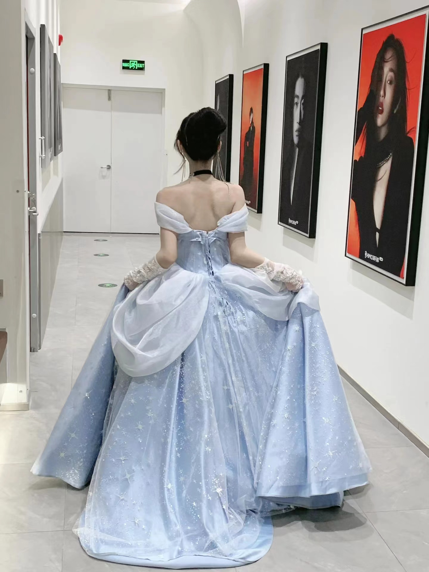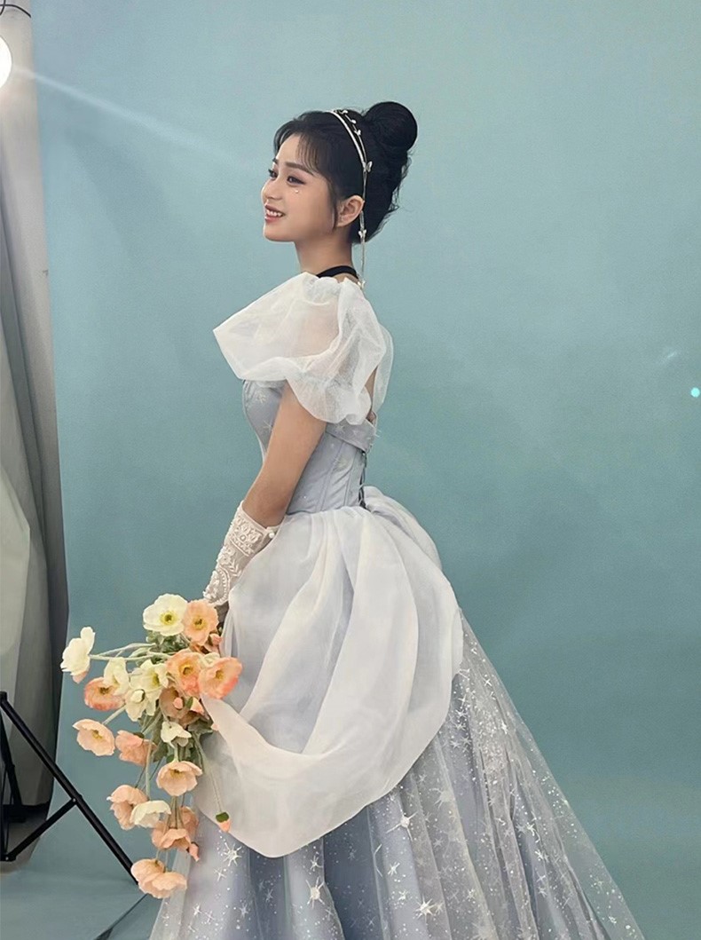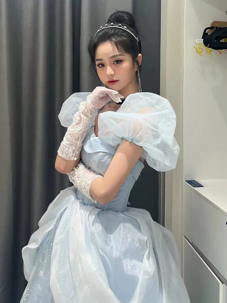 Midnight Cinderella Prom Evening Party Elegant Blue Gown Princess Fairy Puff Sleeve Tube Dress