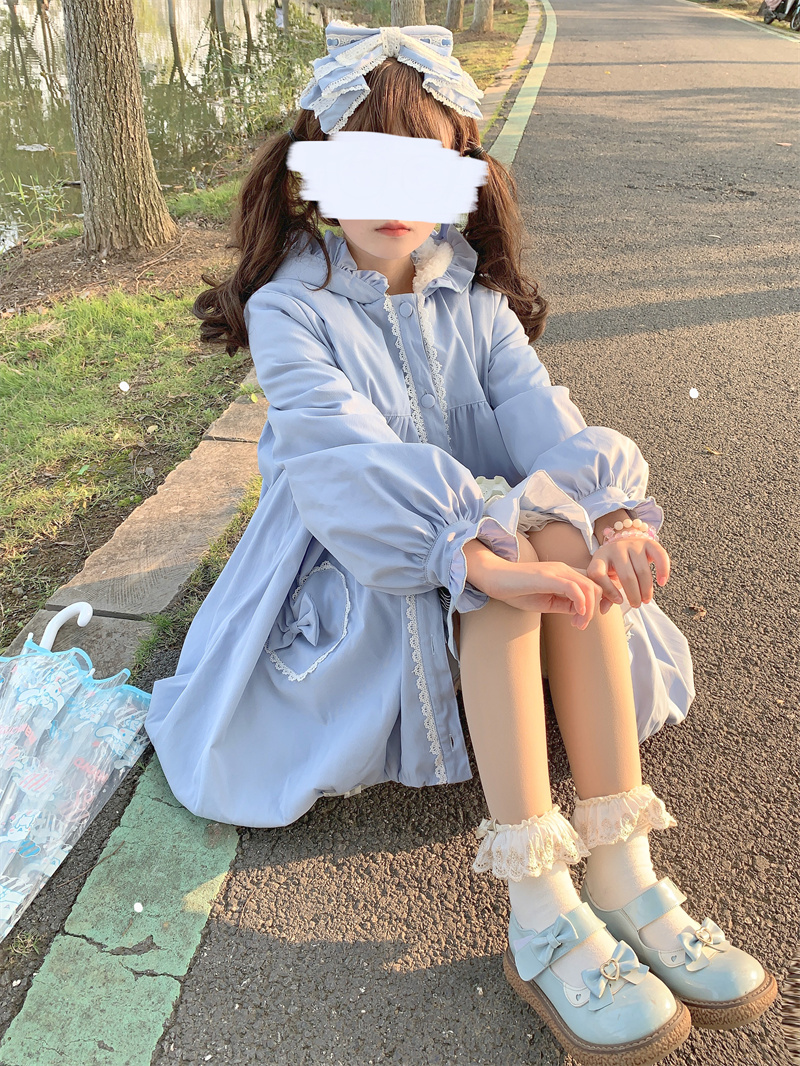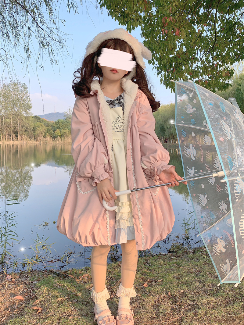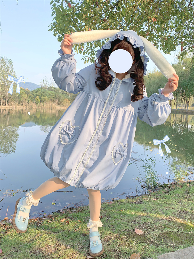 Japanese Style Cute Pastel Pink Blue Bunny Rabbit Hoodie Velvet Thick Warm Winter Coat