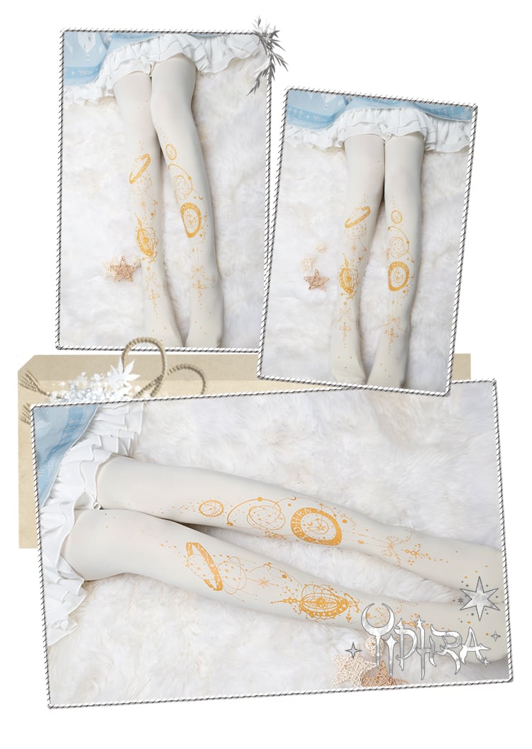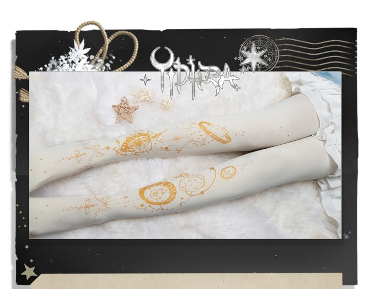 Constellation Golden Compass Starry Sky Stars Dream Witch Princess Black & White Stockings Pantyhose Garment