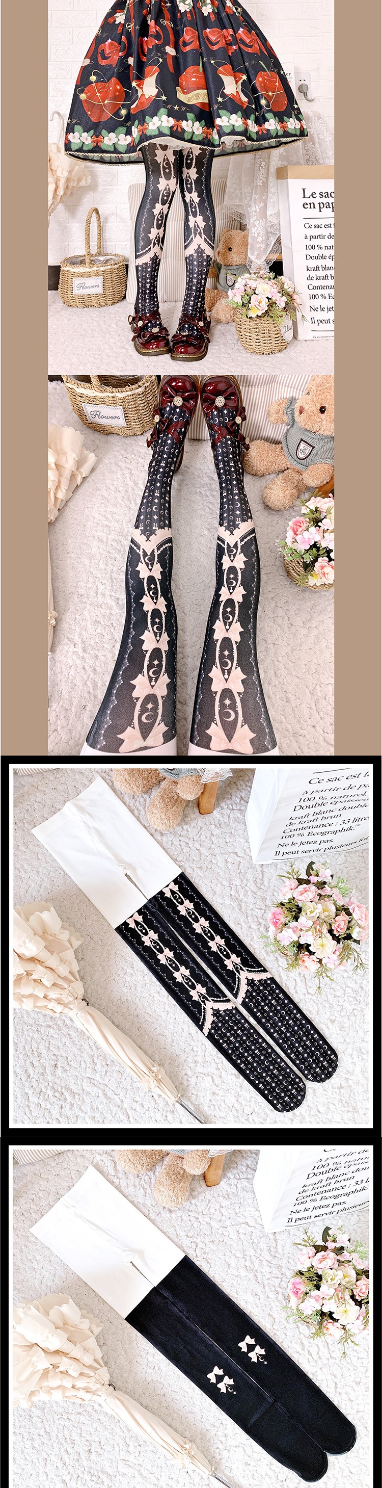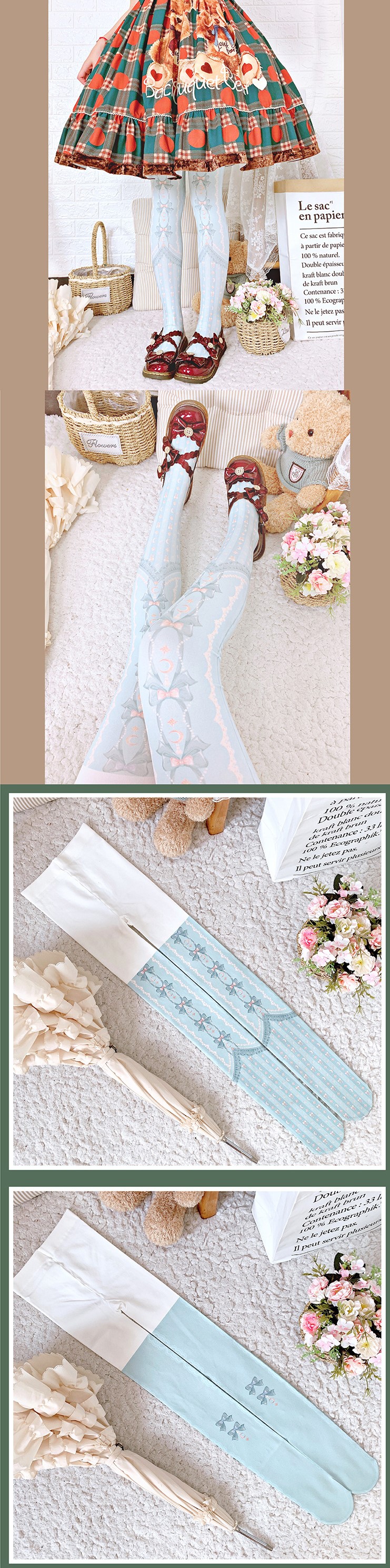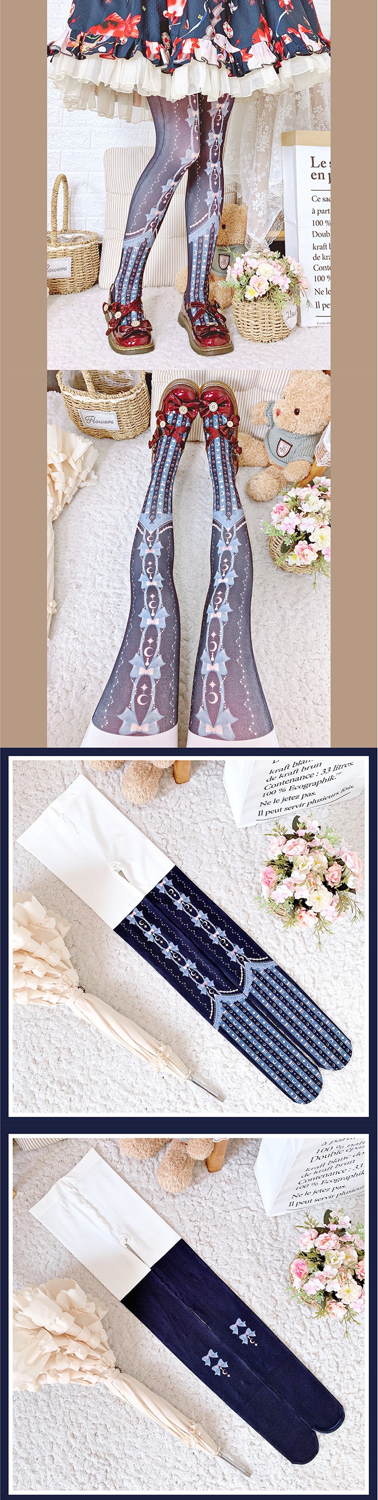 Stars & Moon Sweet Bow Pastel Color Princess Stockings Pantyhose Garment