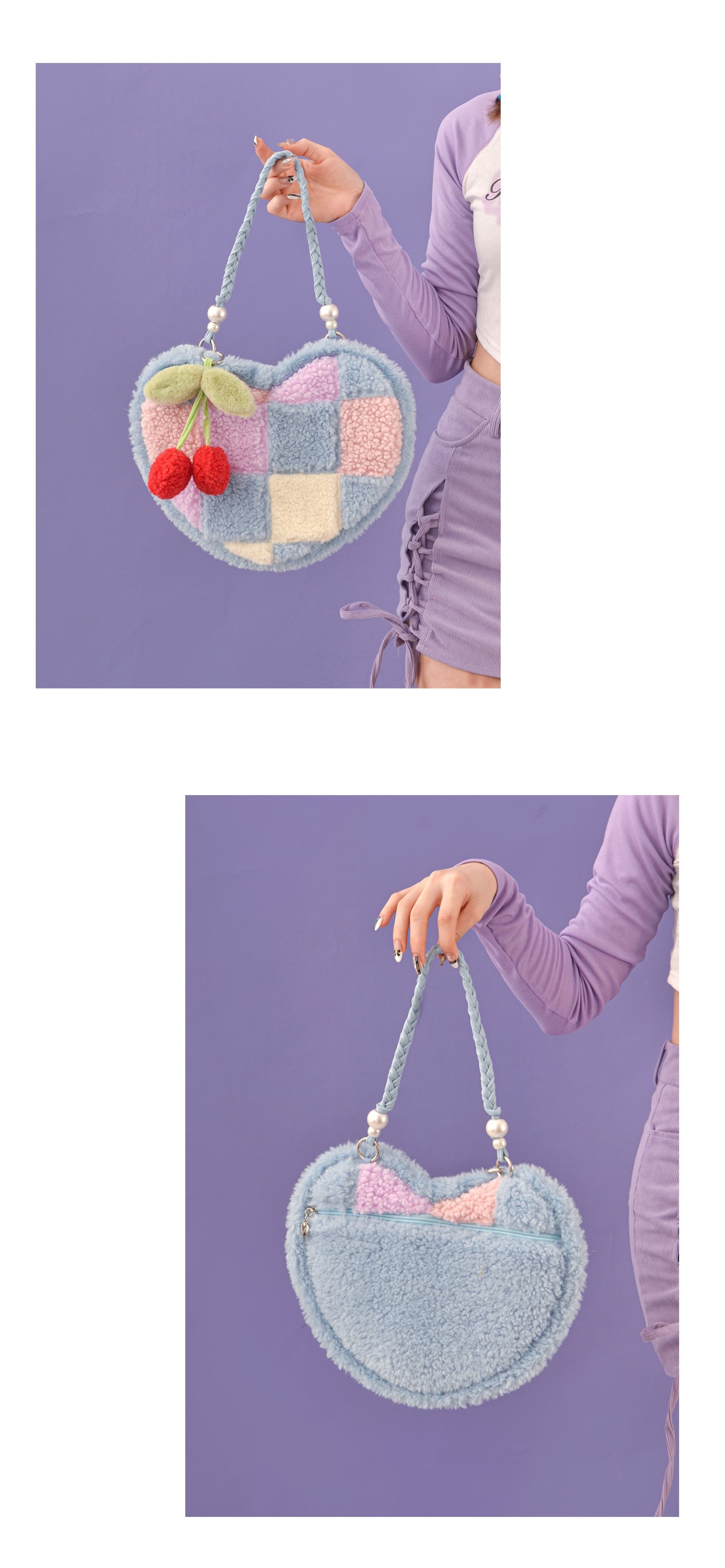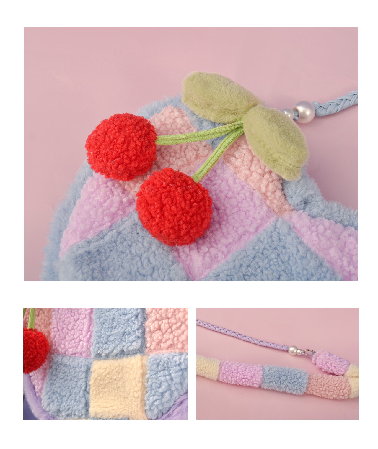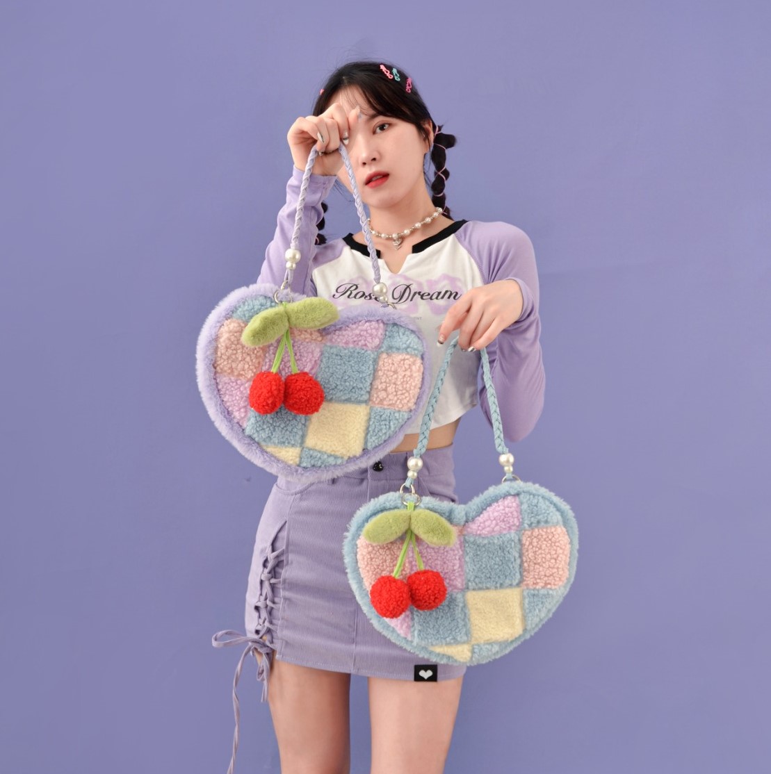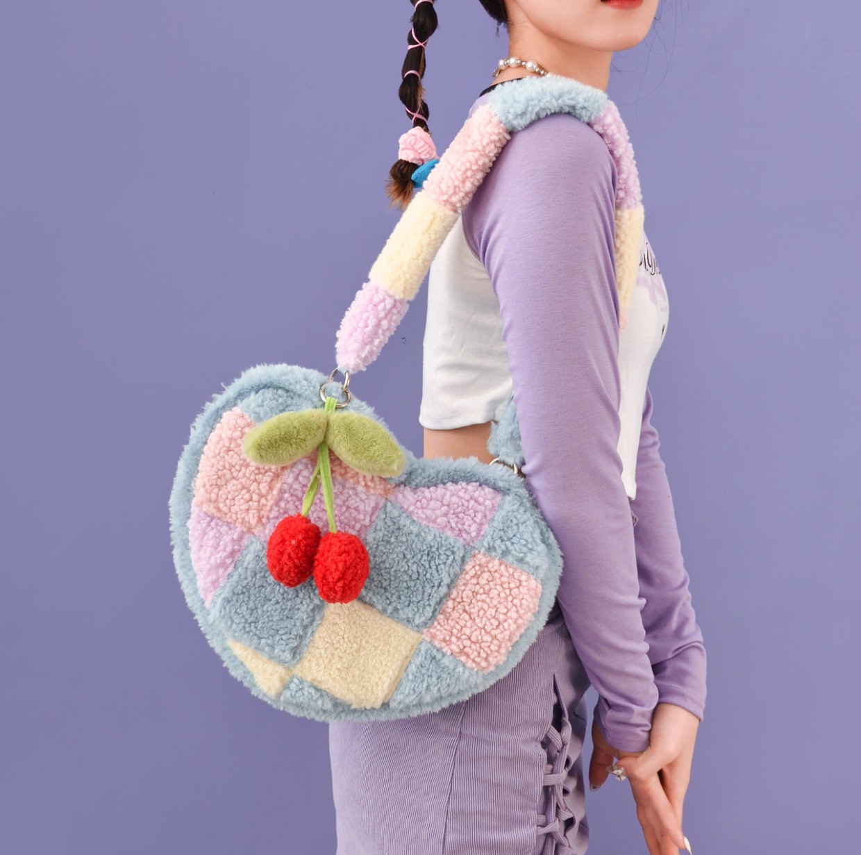 Cherry Cross Stitch Pattern Y2K Rainbow Blue & Purple Pastel Colorful Women Shoulder Messenger Bag