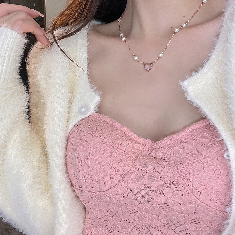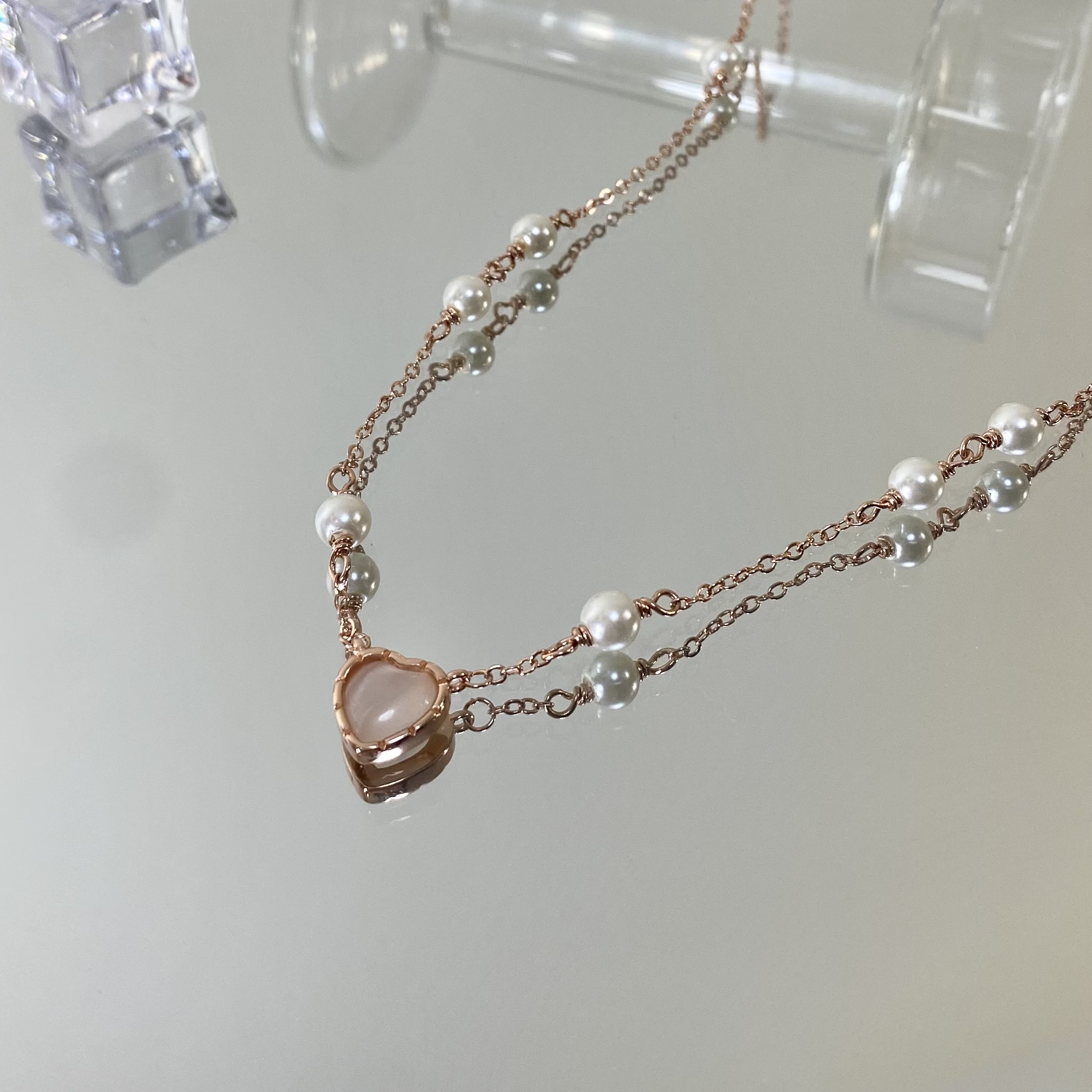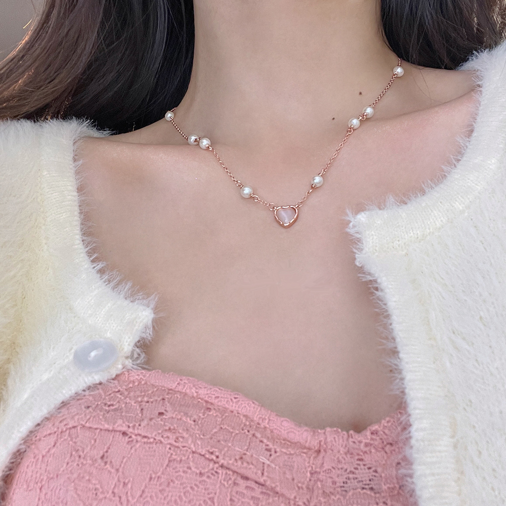 Delicate Princess Pink Heart Pearl Pendant Necklace