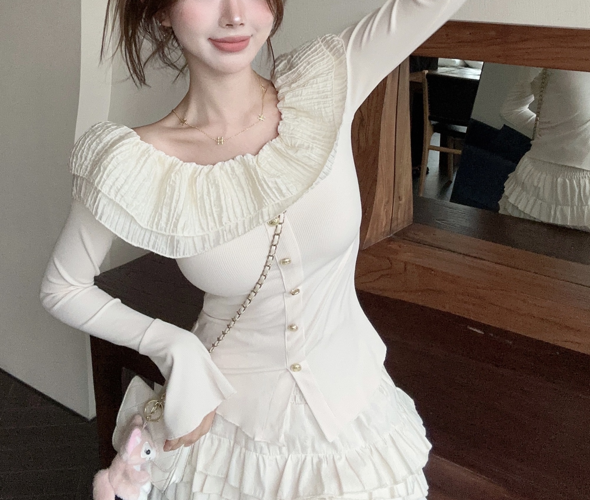 Frill Ruffled Coquette Fit Long Sleeve Cream Top