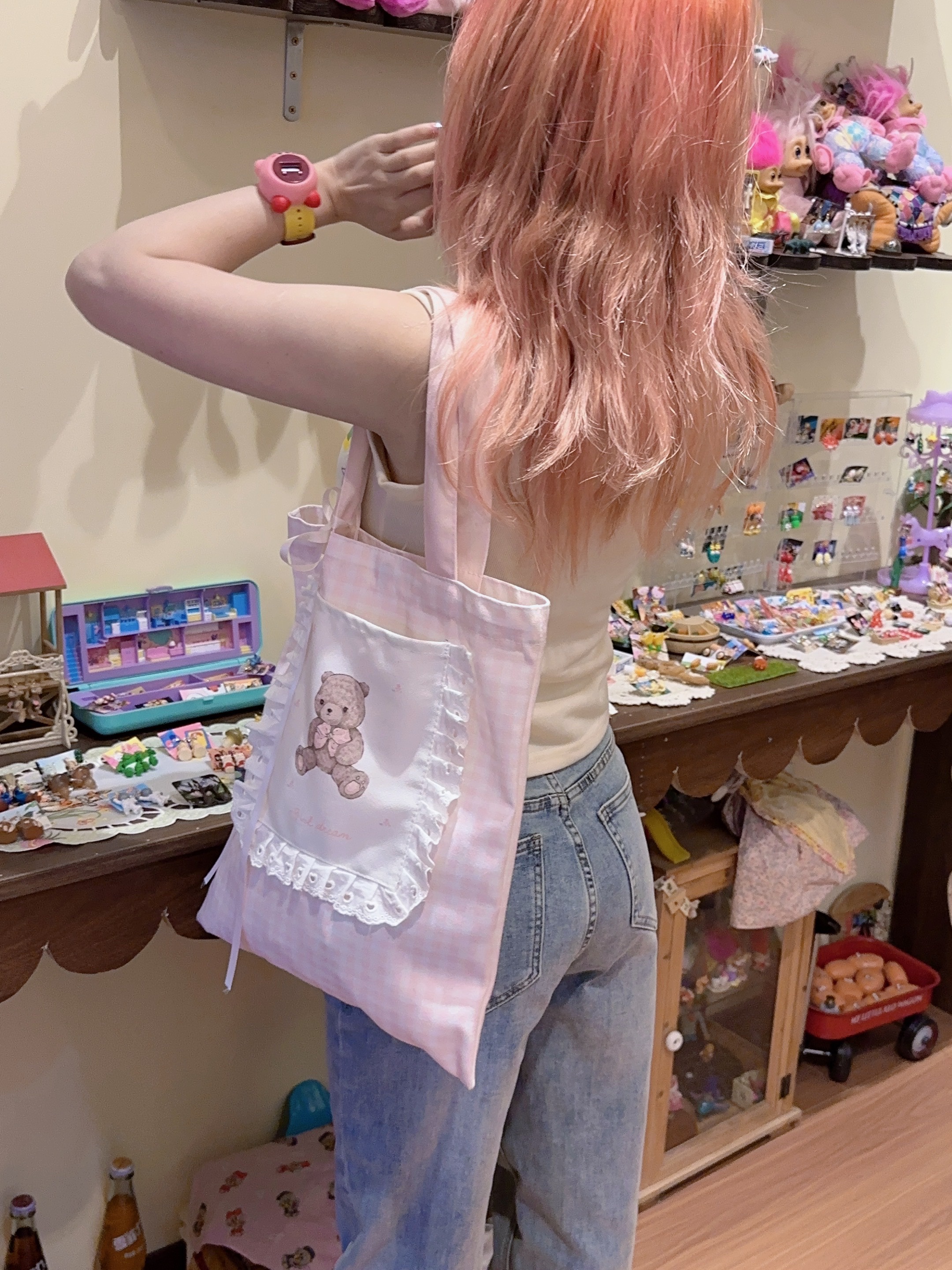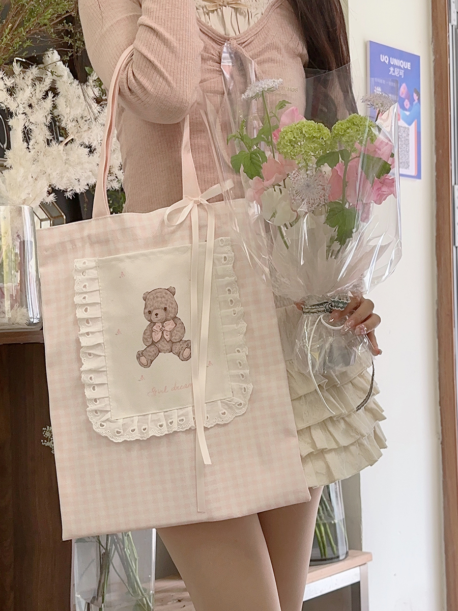 Girl's Dream Teddy Bear Cute Coquette Girl Tote Bag