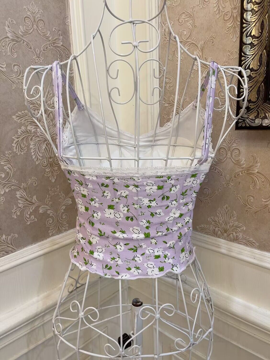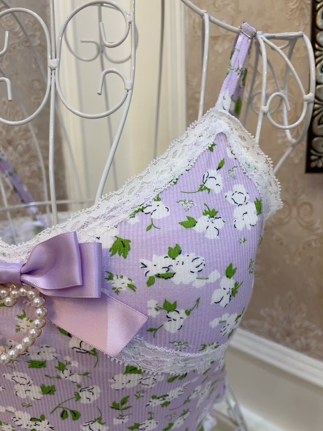 Sweetheart Princess Purple Floral Coquette Camisole Tank Top