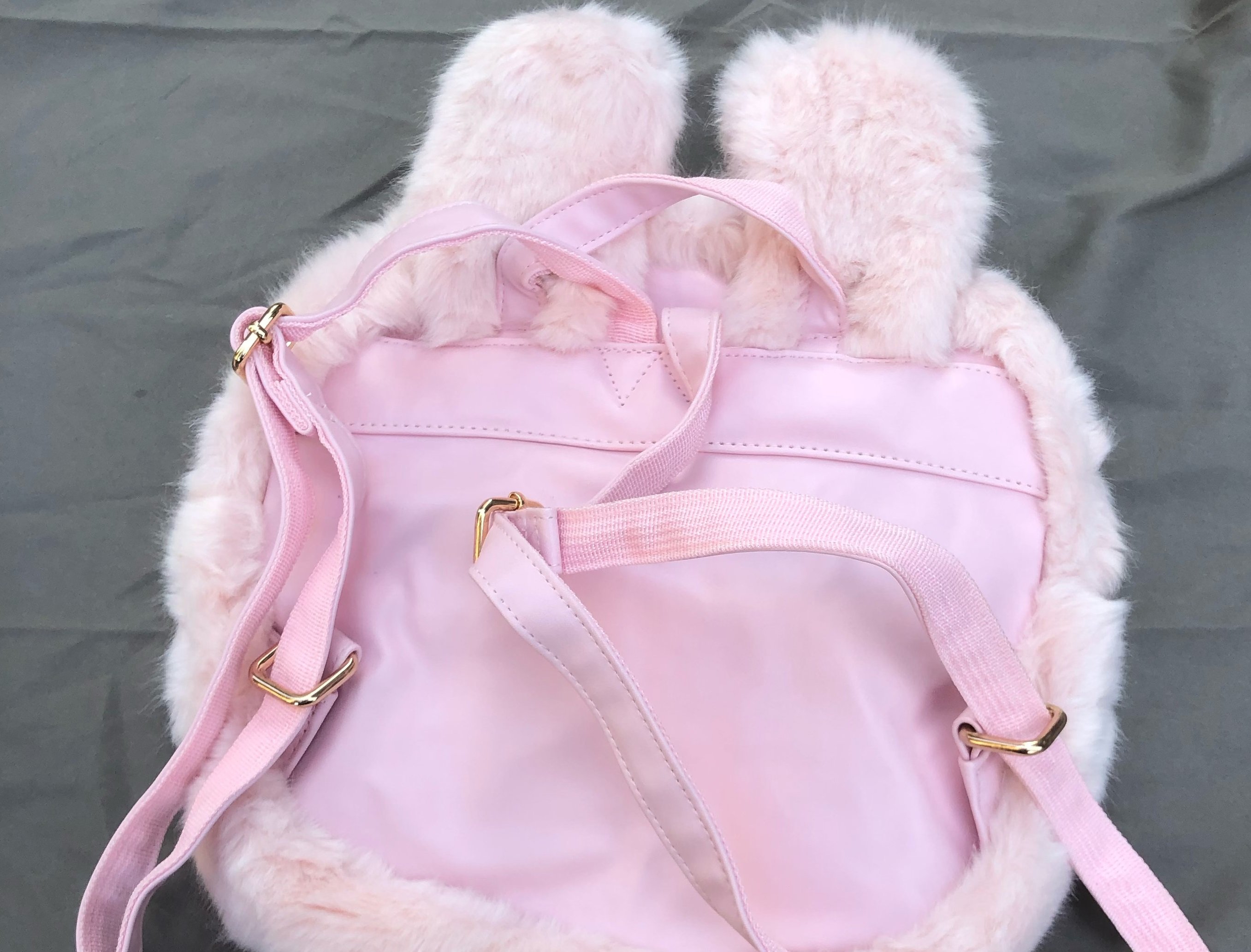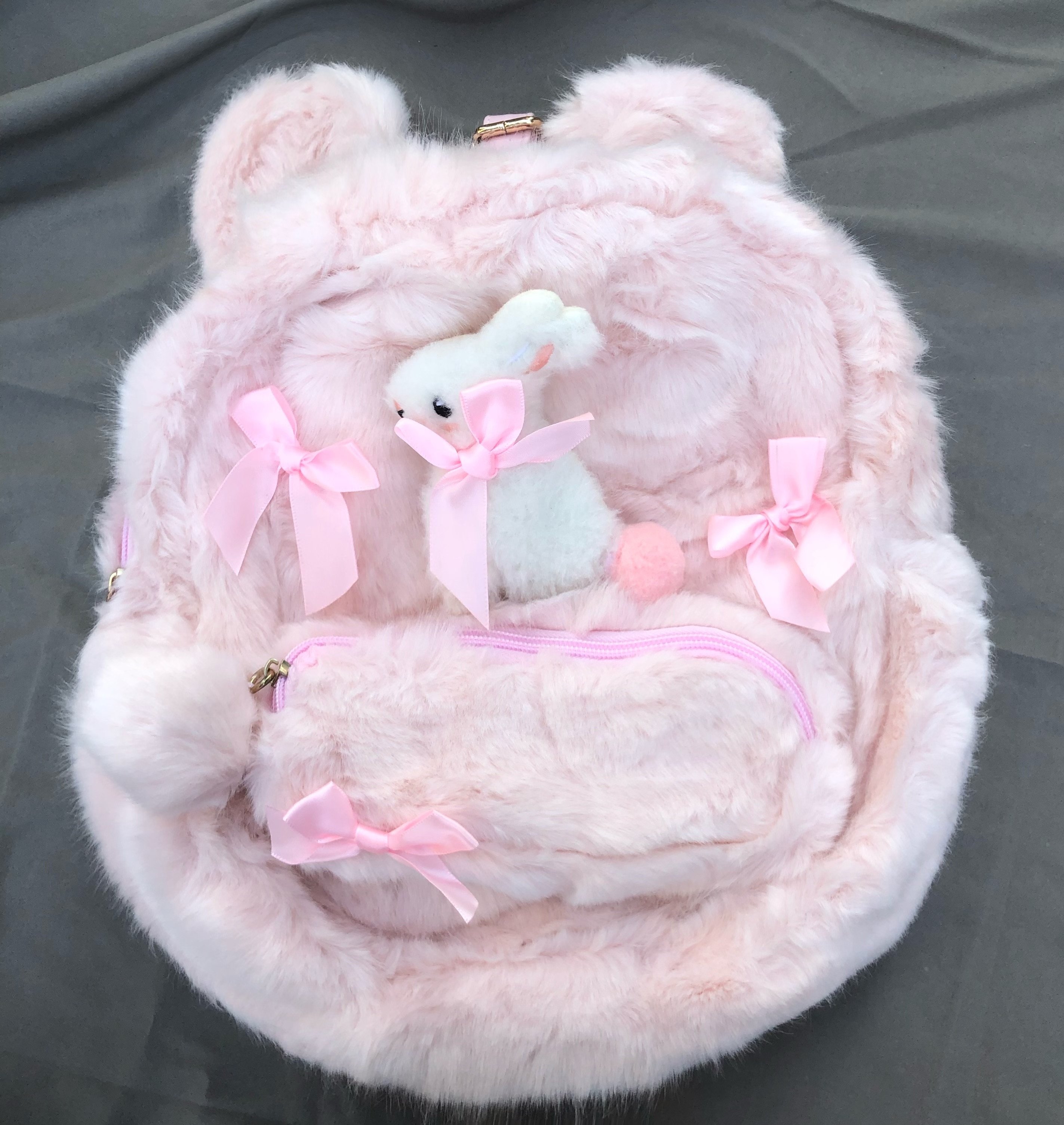 White Bunny Rabbit Doll Plush Fluff Cute Mini School Backpack Bag