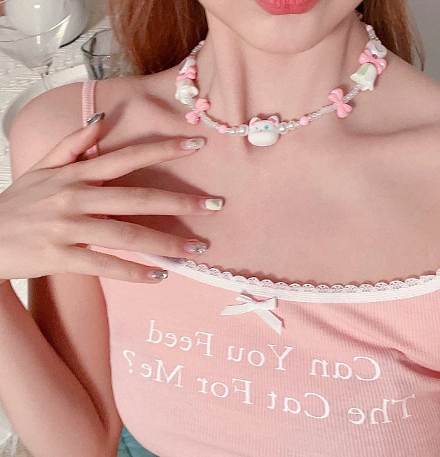 Pink Bow Cute Cat Vintage Pendant Necklace