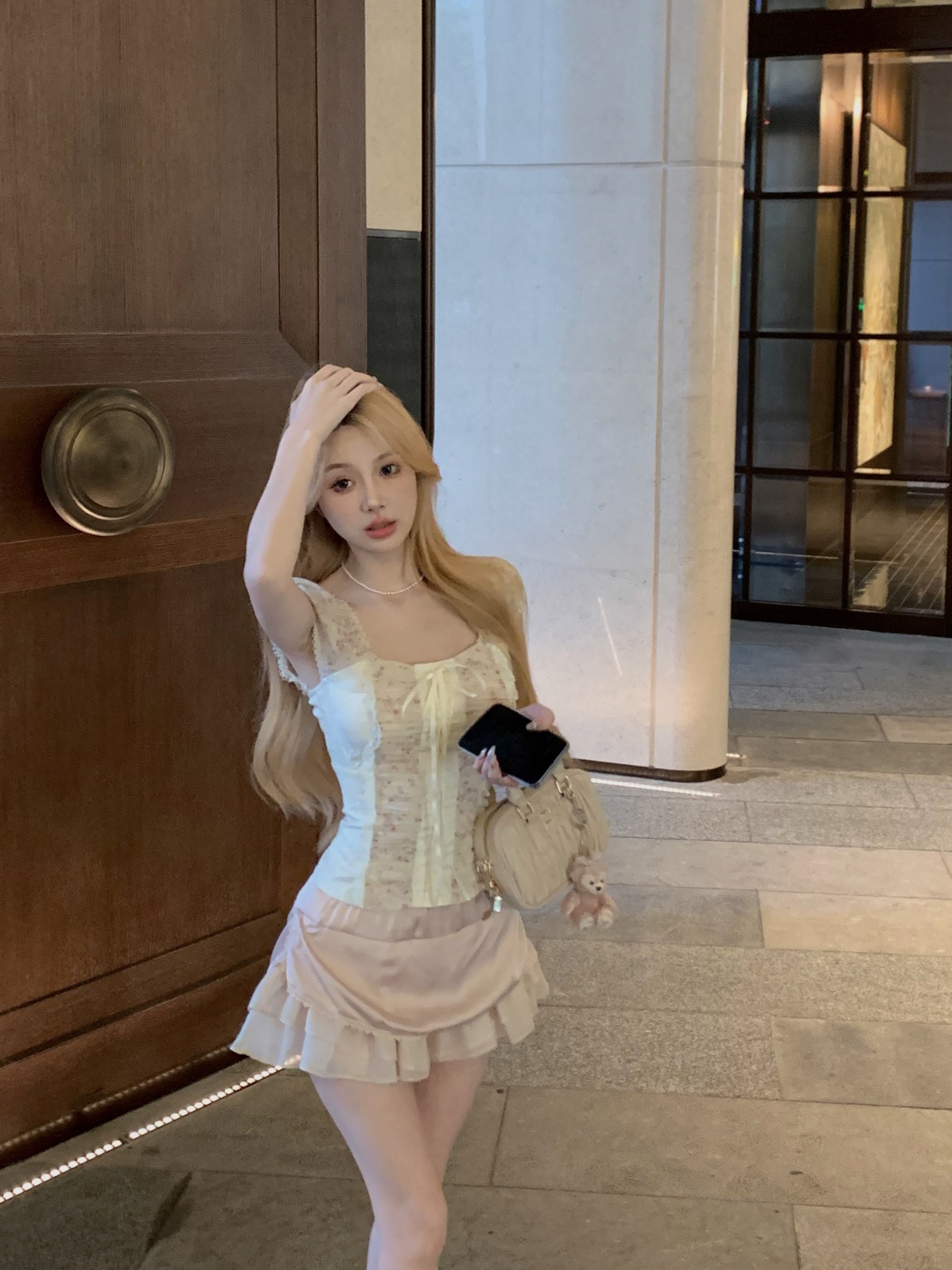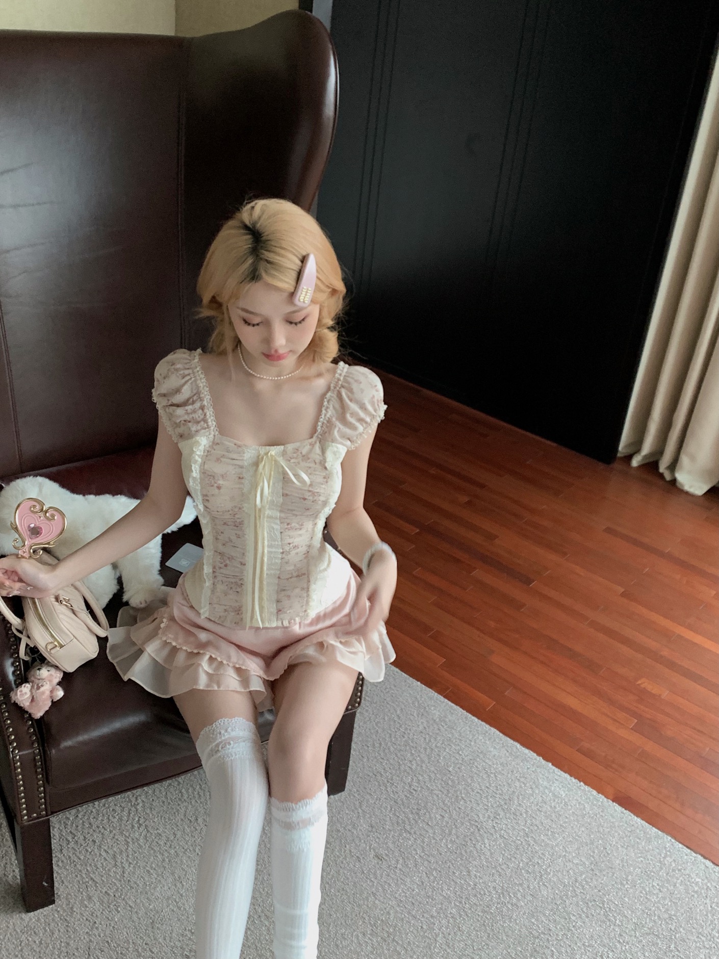 Angel Lace Pale Pink Puff Sleeve Top & Ruffled Short Skirt Two Piece Set