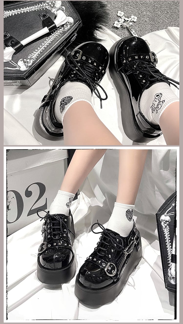 Punk Rock Goth Girl Student Gothic Black & White High Heels Platform Wedges Shoes