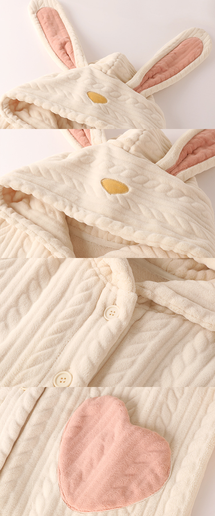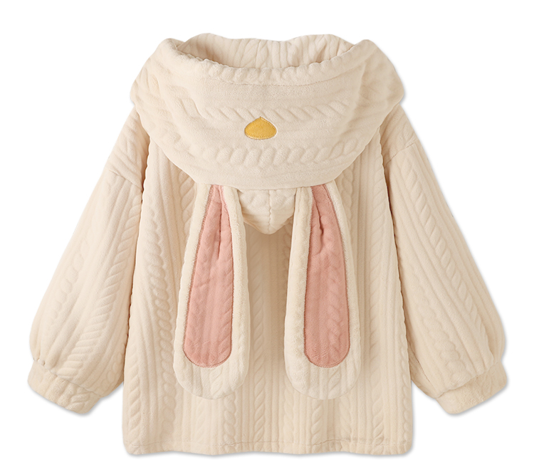 Cloudy and Sweet Love Rabbit Ears White Pink Japanese Cute Thick Warm Winter Top & Pants Pajamas Sleepwear Two Piece Set