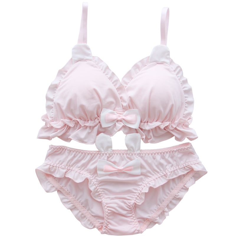 Rabbit Bunny Bow Lace Girl Sweet Japanese Student Bra Set White Pink Panties Underwear Lingerie Lingerie