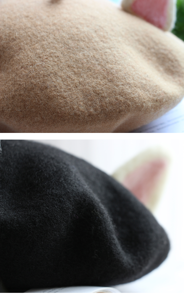 Cute Wool Cat Ears Beret Hat