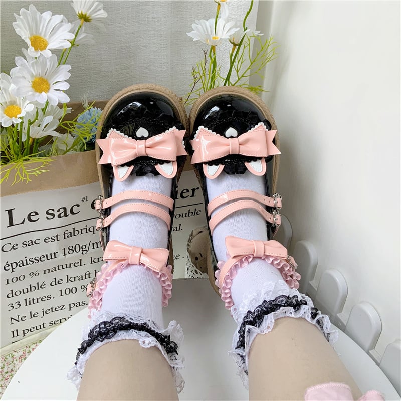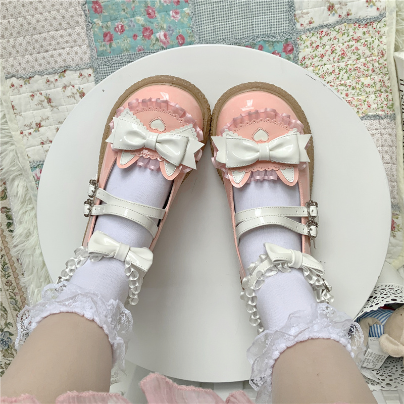 Japanese Harajuku Princess Cute Student Girl Doll Two Bow Cat Ears Leather Shoes