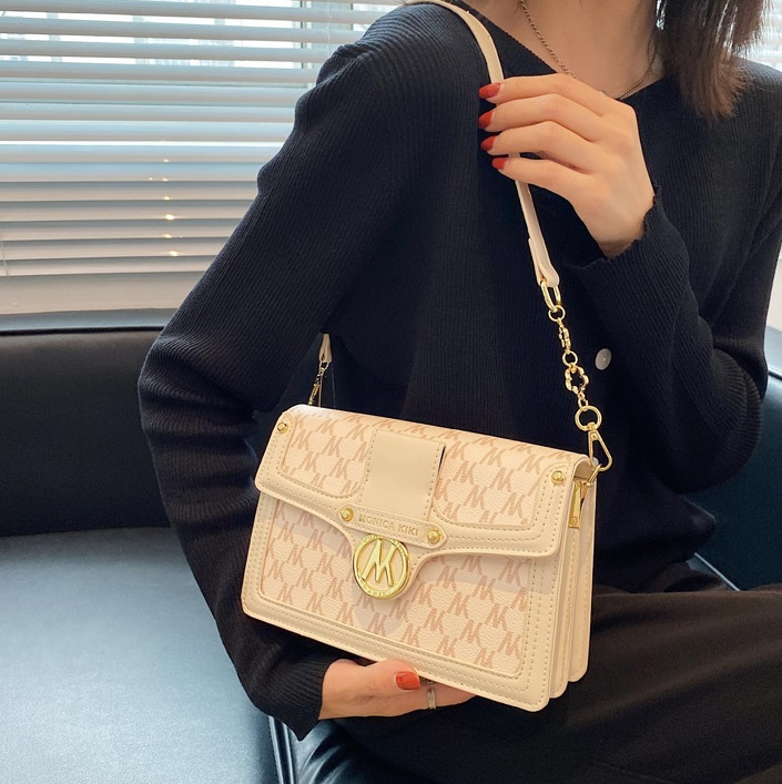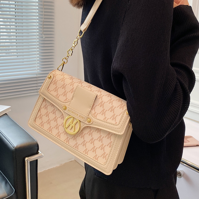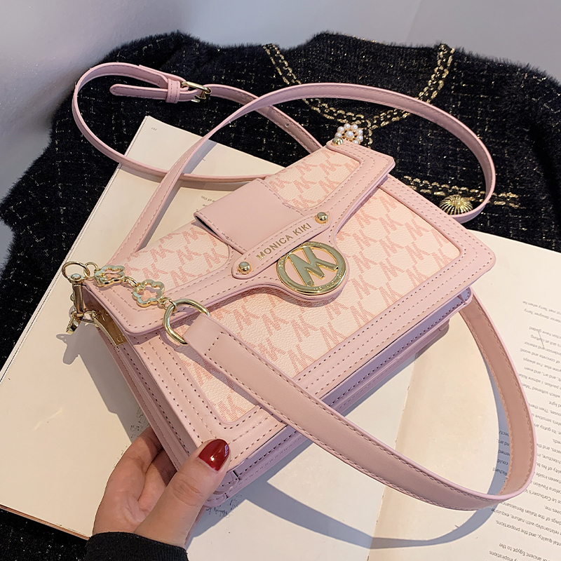 Classic Women Fashion Trendy Style Golden Symbol Strap Cream Pink Leather Handbag Bag