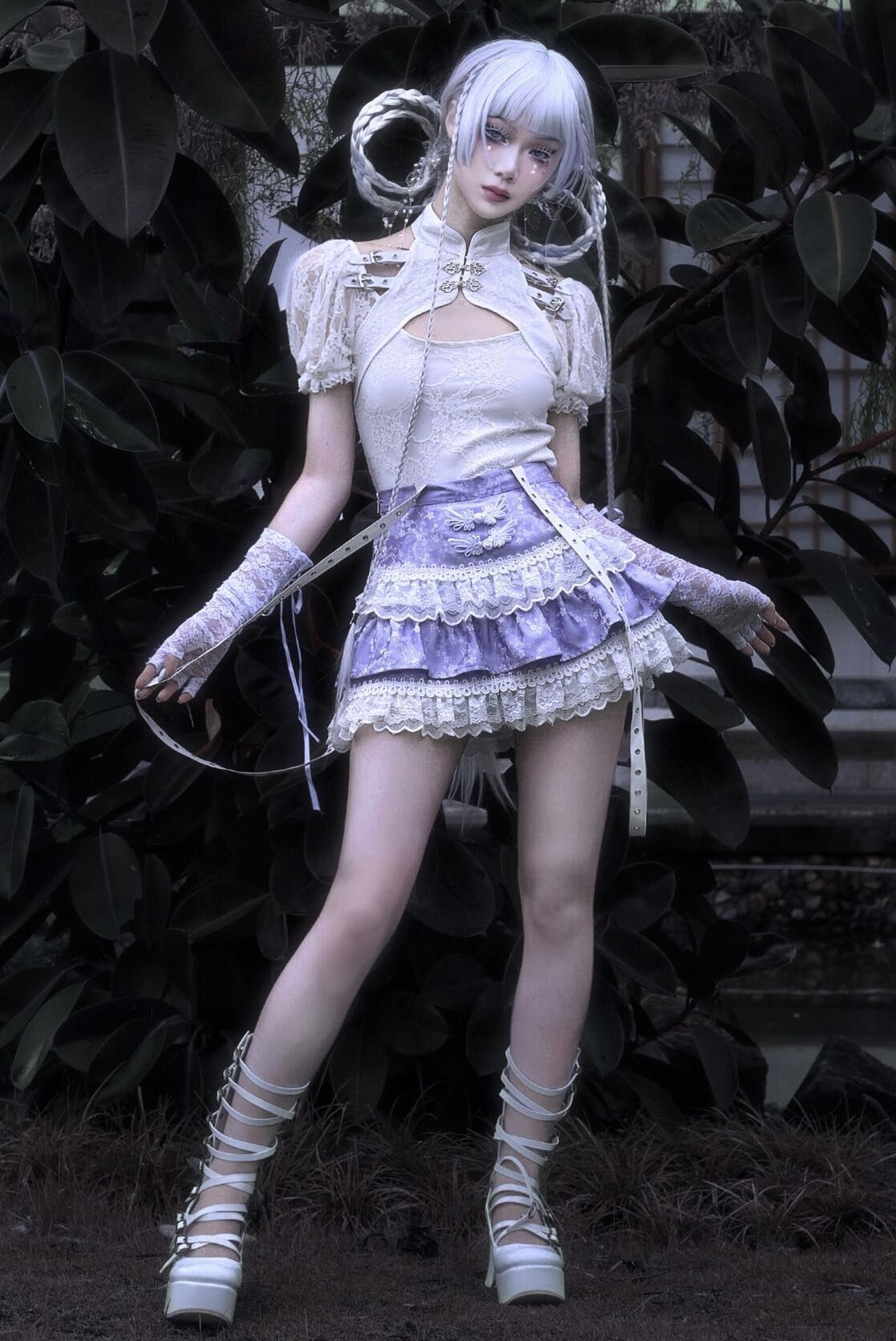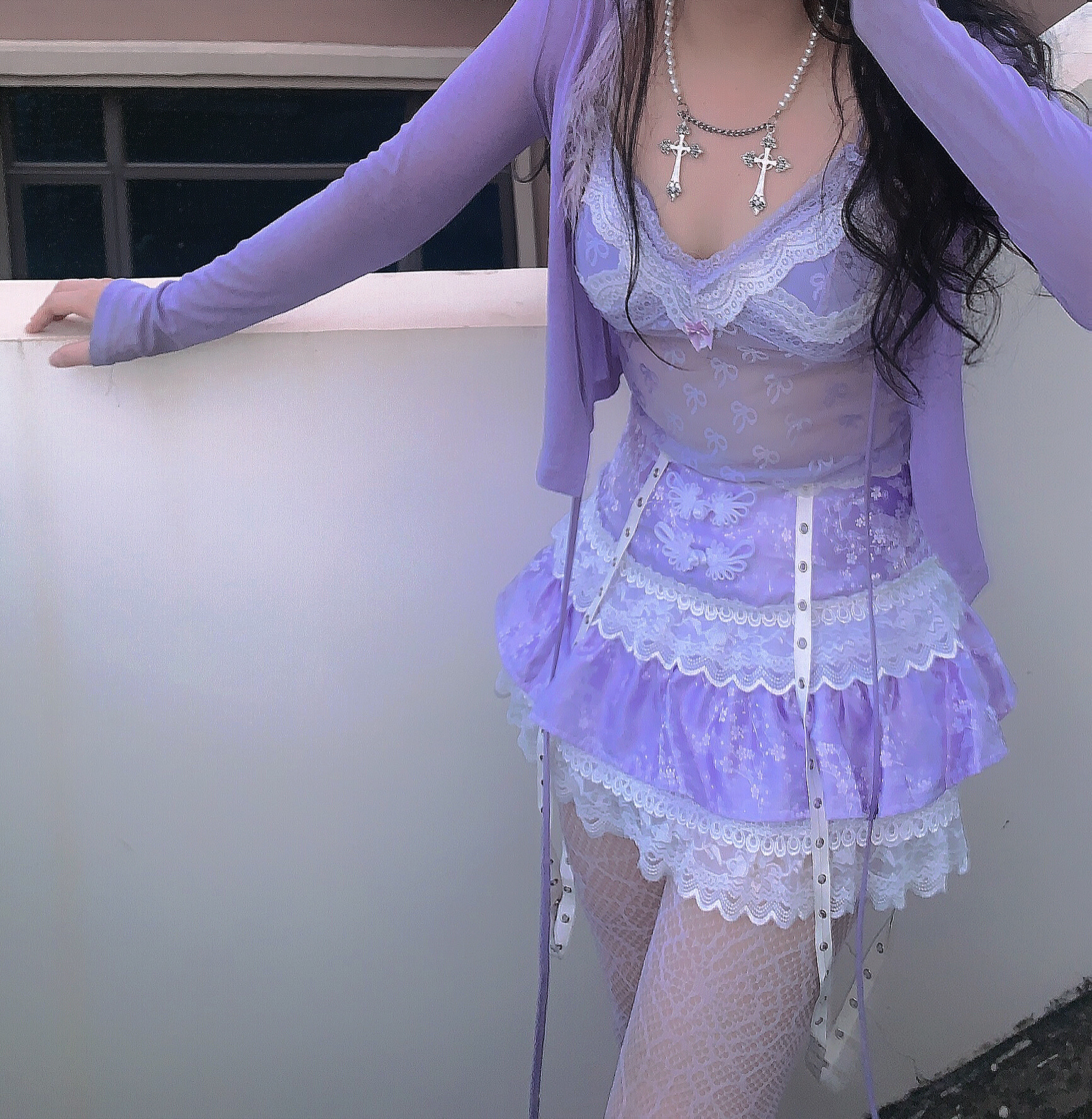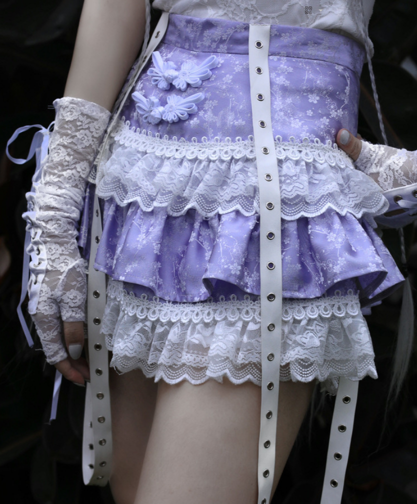 Salvation Gothic Punk Jacquard Buckle White Lace Lace Purple Short Cake Skirt