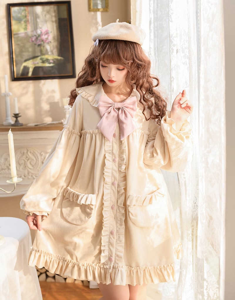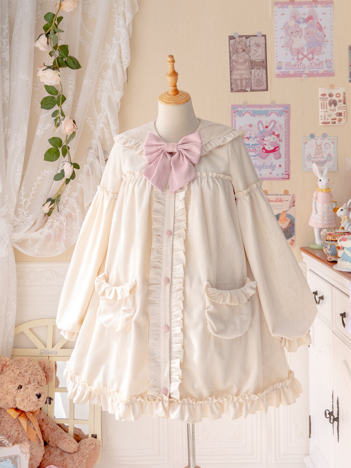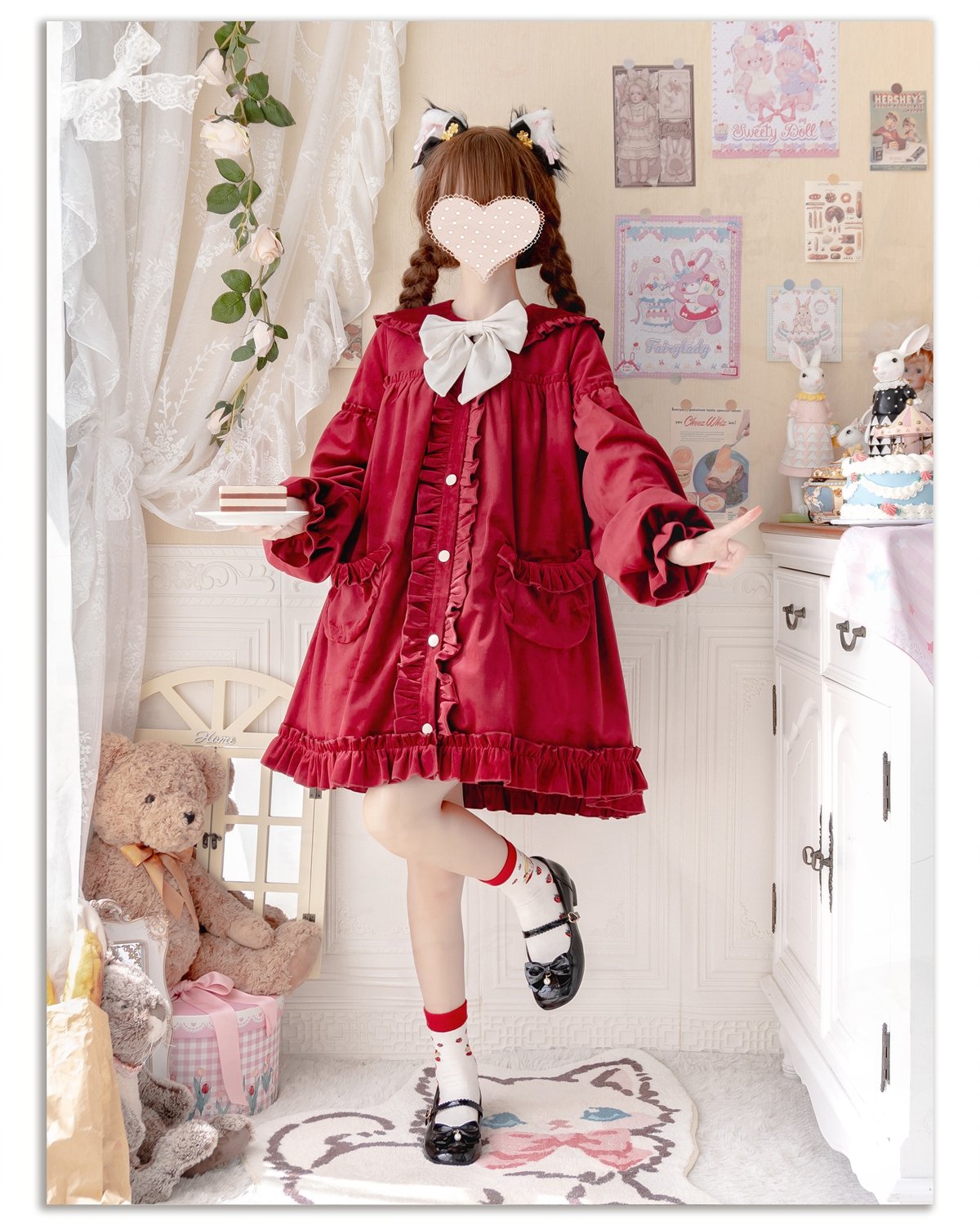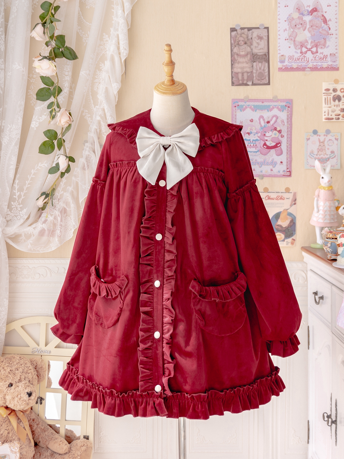 Winter Autumn Soft Cute Sweet Lace White & Scarlet Red Coat