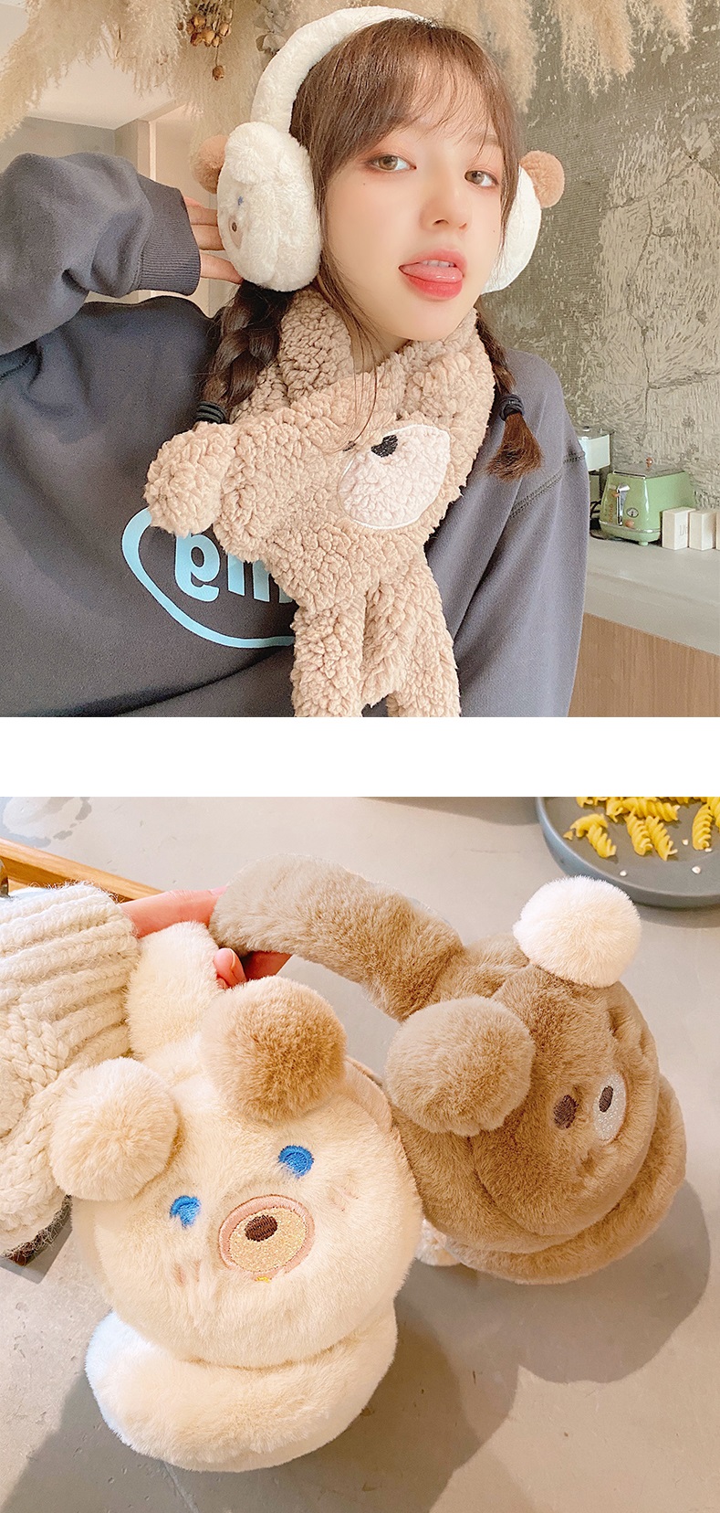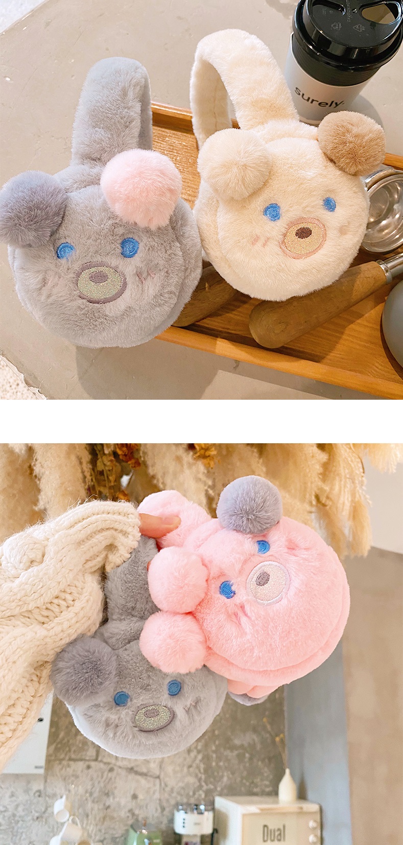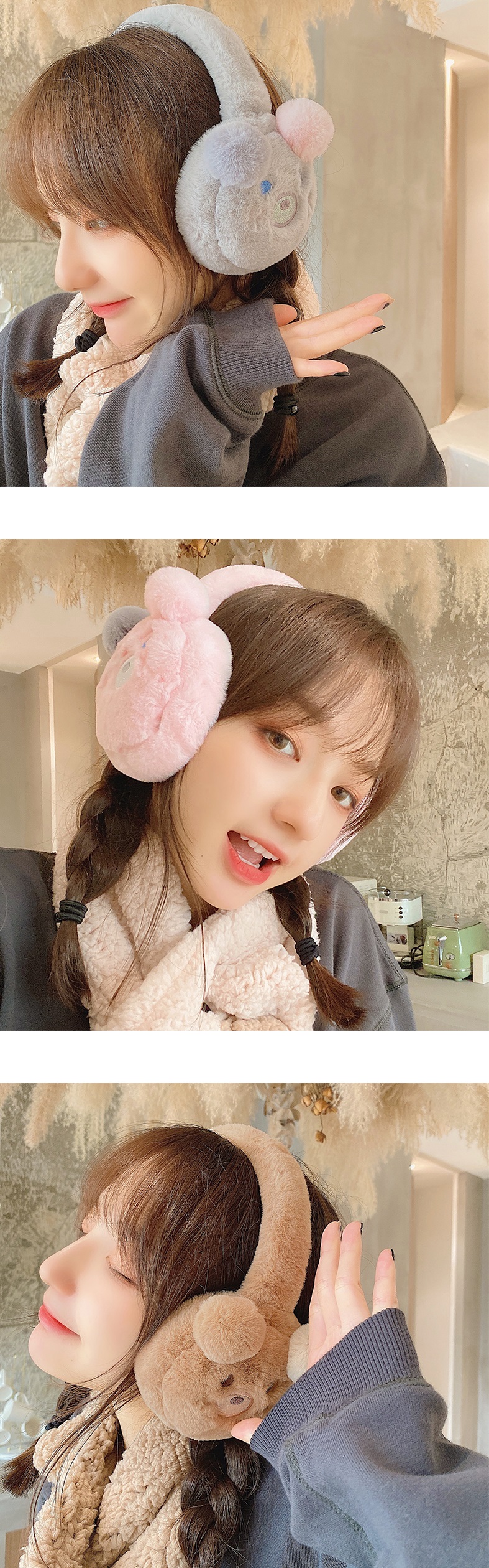 Cute Bear Teddy Ears Sweet Hood Plush Thick Warm Winter Protection Earmuffs