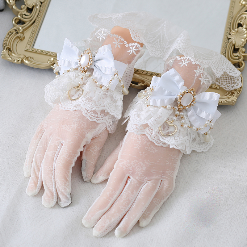 Elegant Pretty Lace Bow Diamond Gemstone Gloves