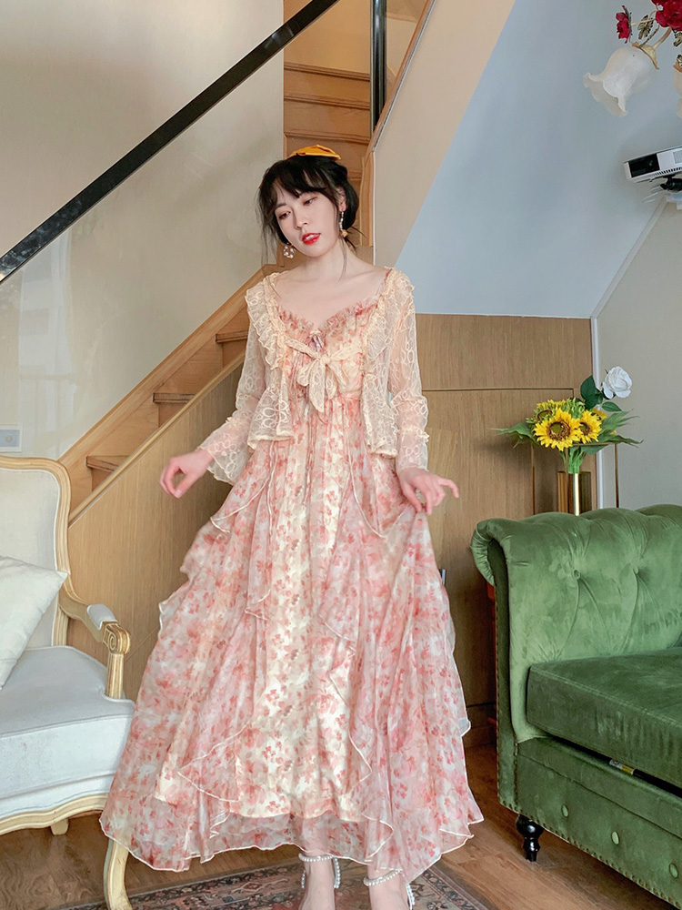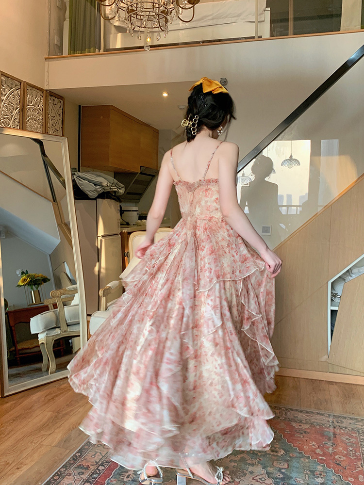 Dreamwalker Fairy In Wonderland Long Floral Pink Dress Skirt