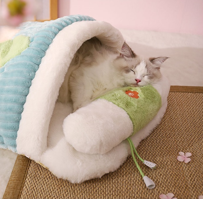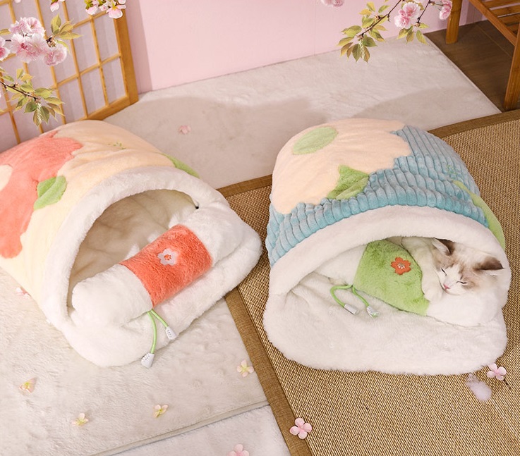 Japanese Flower Tatami Mat Bed with Warm Quit Cats Dogs Pets Beds