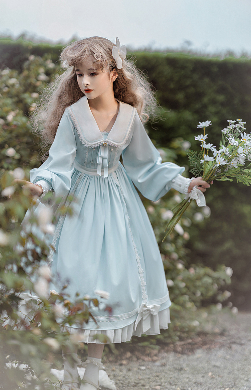 Love Letter Girl Lace Pastel Pink & Blue Long Sleeve Dress