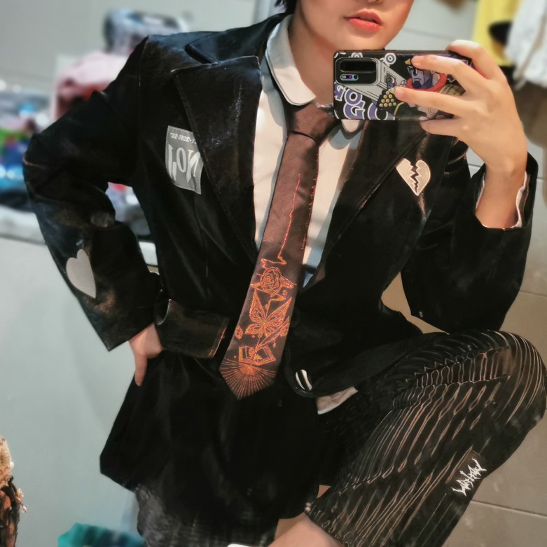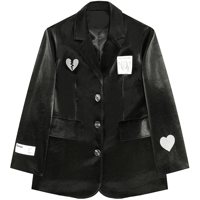 Heart Love Embroidery PU Spring Autumn Fall Winter Fashion Vintage Classic Black Jacket Suit