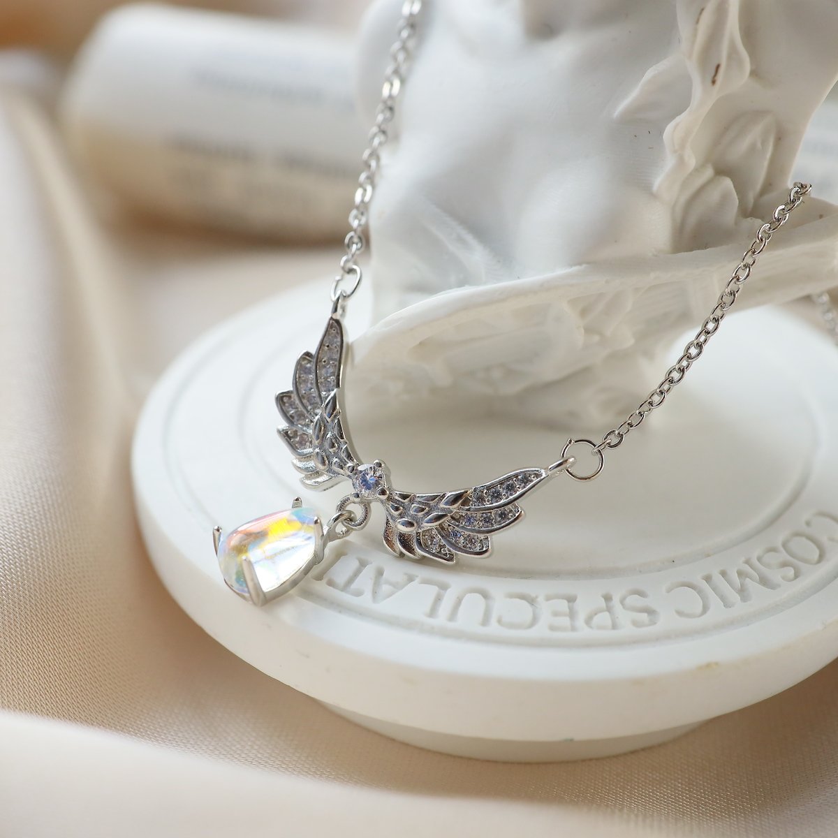 Luxury Pretty Girl Exquisite Moonstone Angel Wings Pendant Necklace