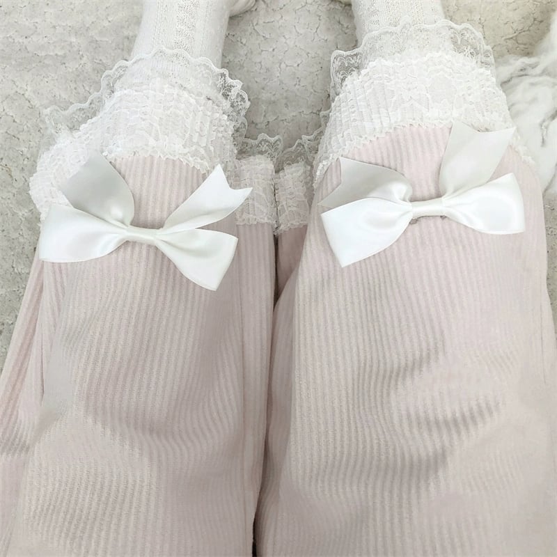 Spring Autumn Soft Bow Pink White Black Blue Trouser Pants