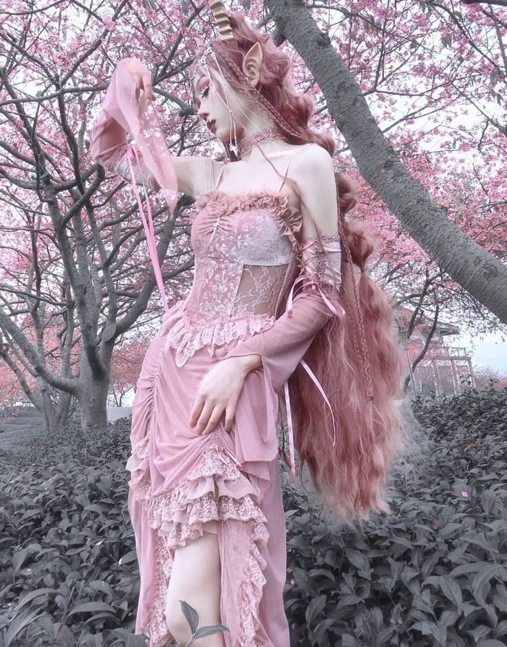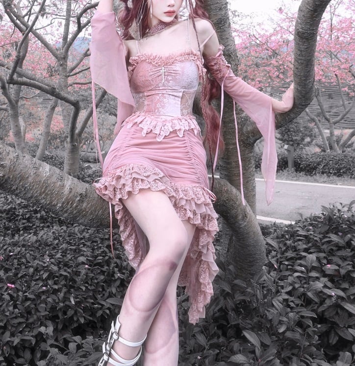 Let us introduce the โGuardian of Sakura Tressโ set, made of elastic velvet fabric, inspired by roses, sakura, gentle lotus root, and spring romance.