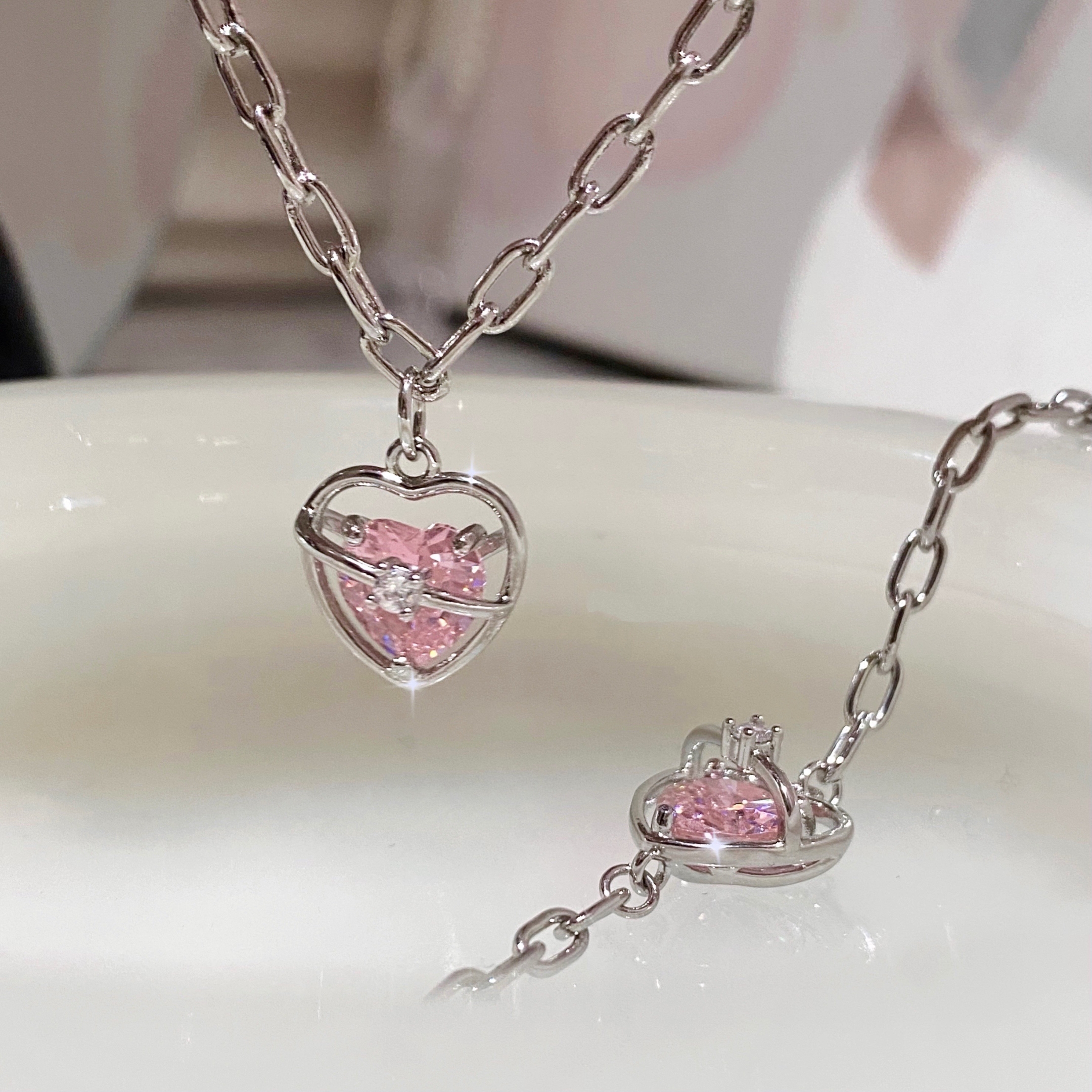 Beautiful Luxury Diamond Heart Pink Galaxy Pendant Necklace Chains