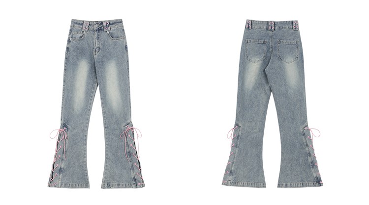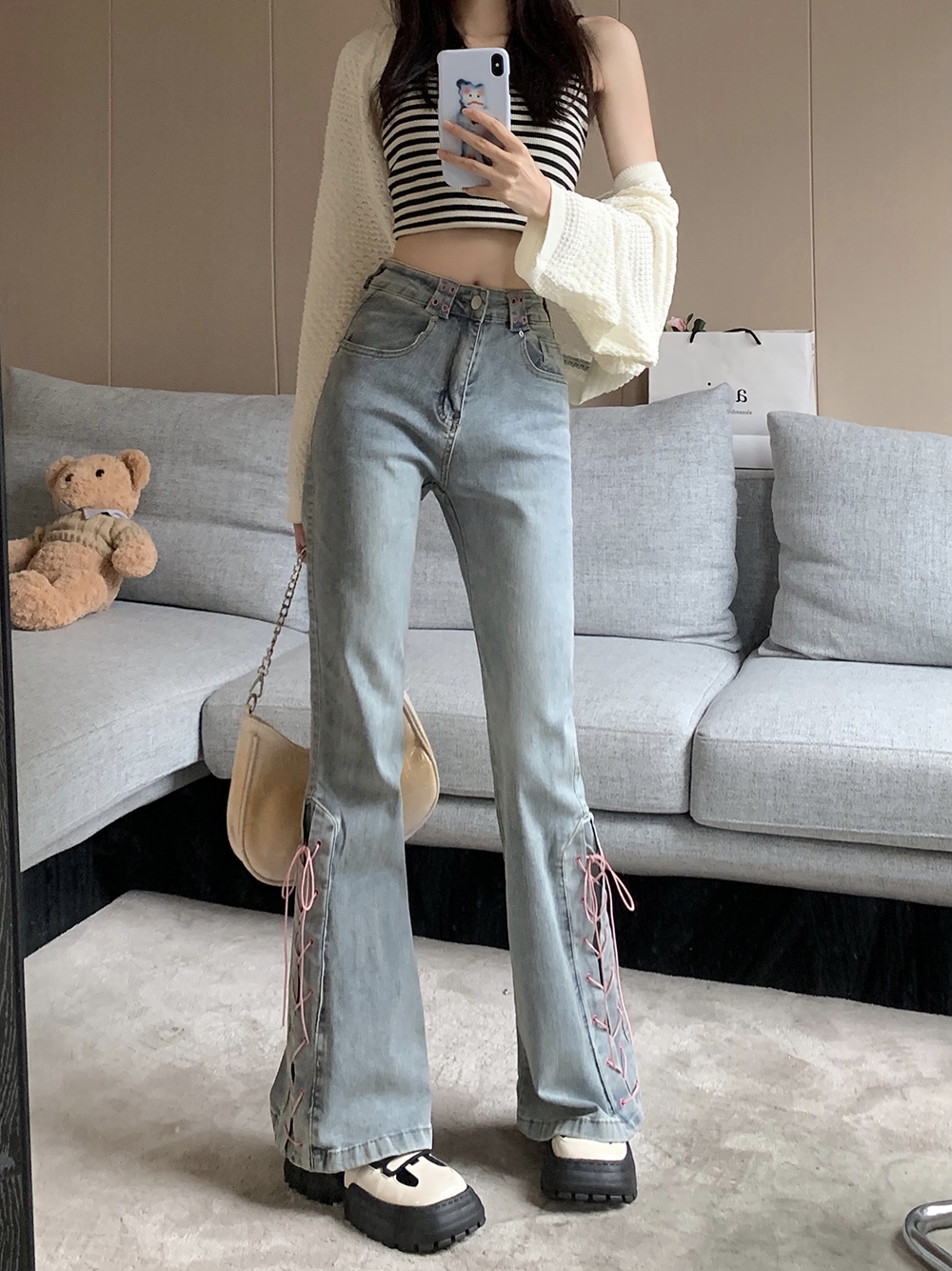 Summer Trendy Stylish Street Cute Pink Ribbon High Waist Jeans Pants