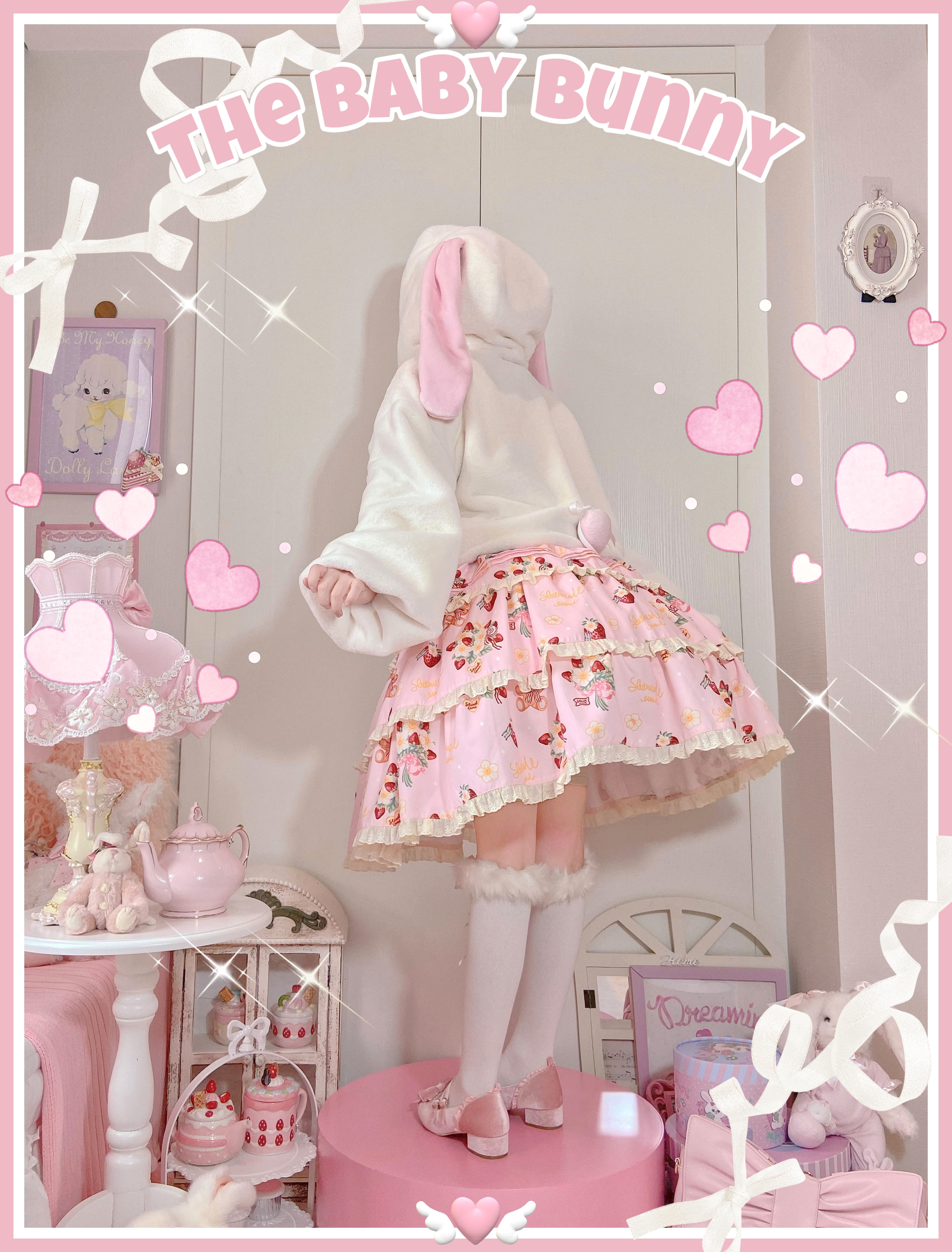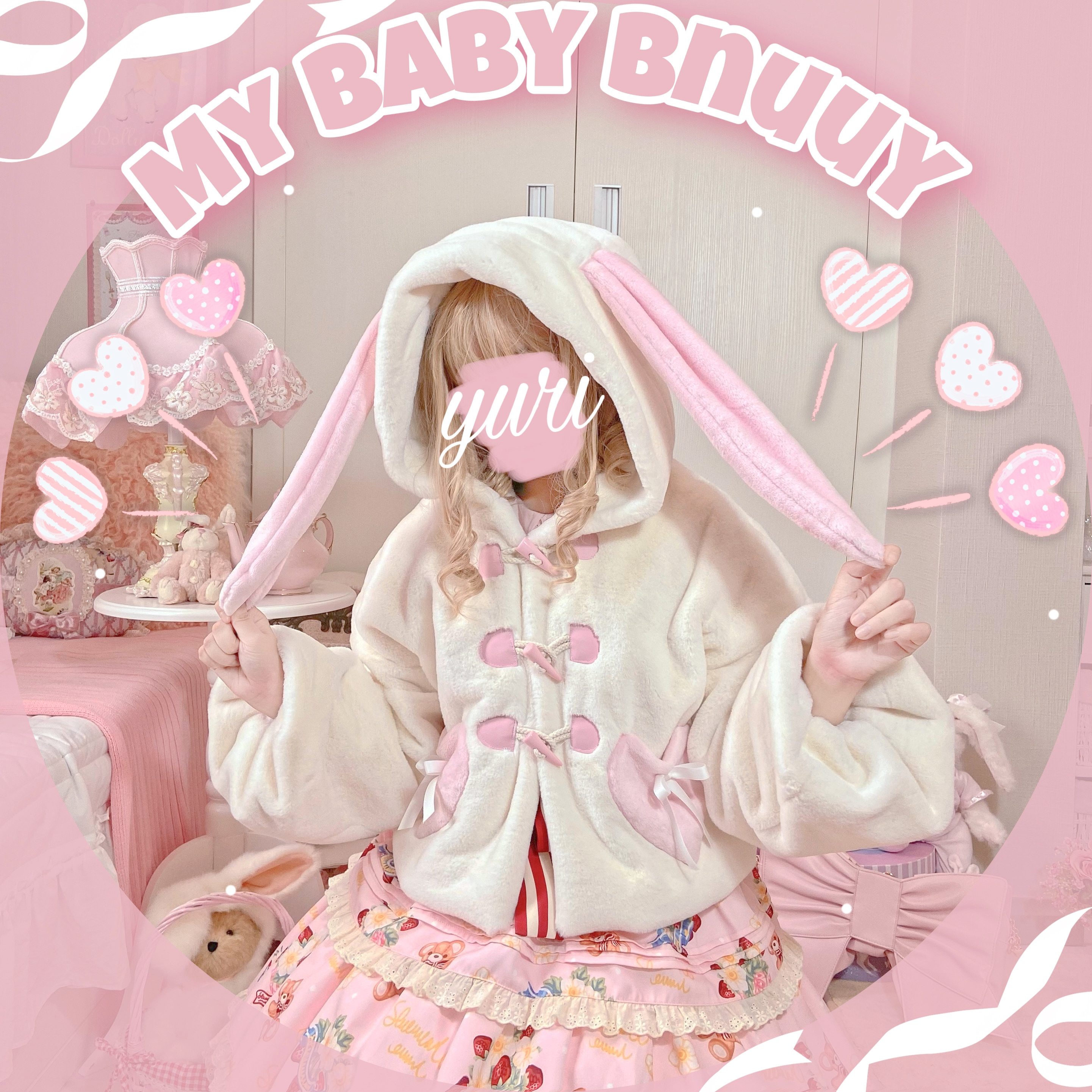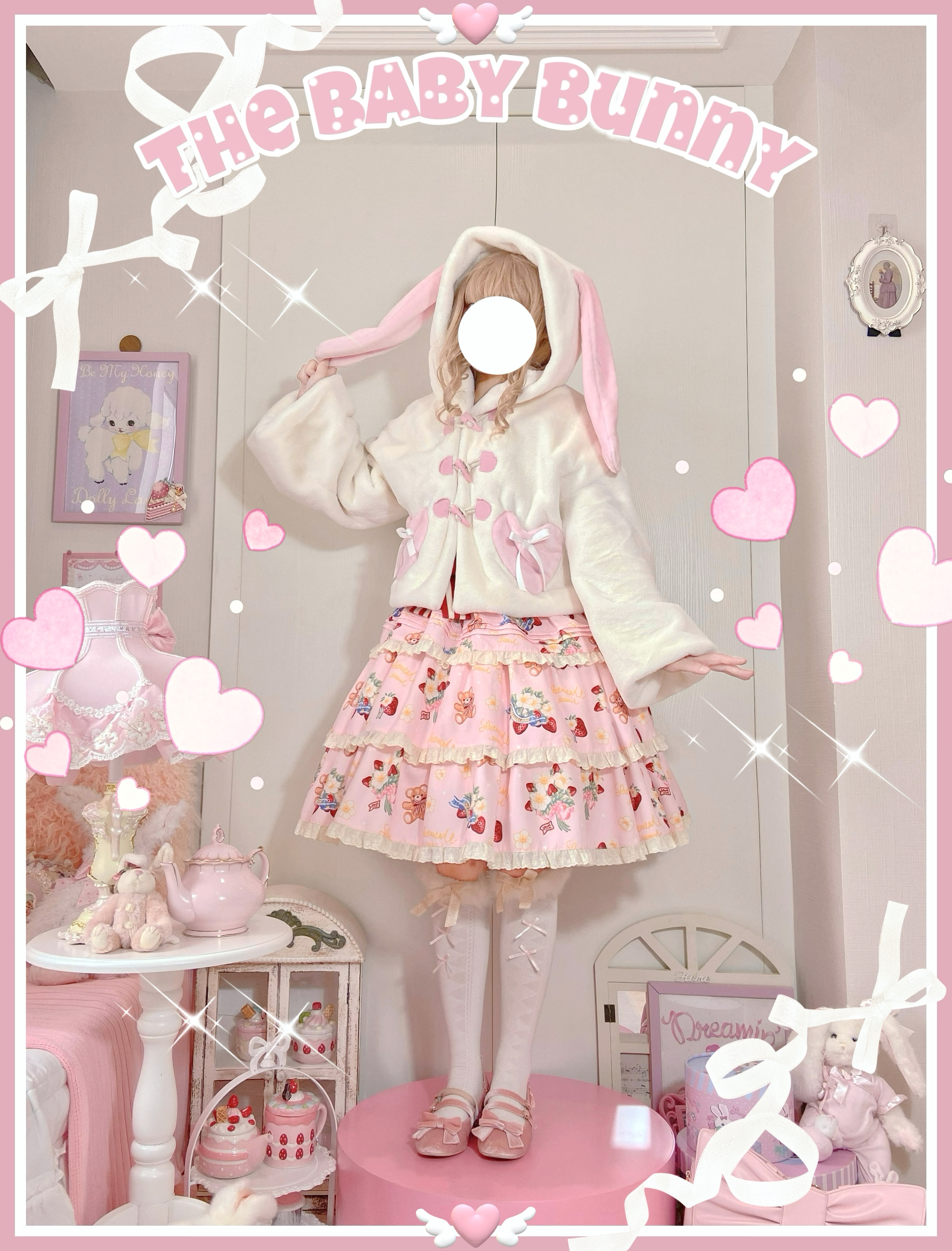 Soft Fluffy Warm Winter Cute Anime Girl Rabbit Bunny Ears Plush Coat Jacket