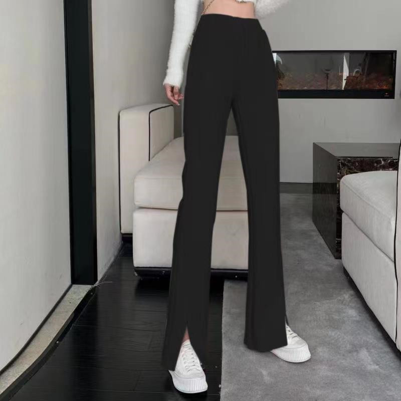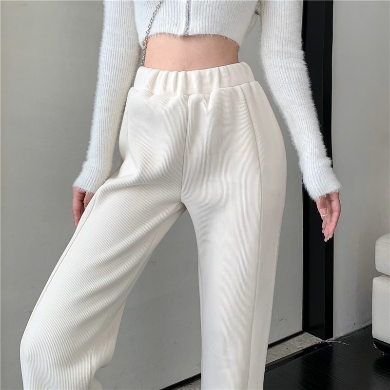 Causual Chic Cool Black Pink White Comfy Velvet Long Wide Leg Gathered Waist Pants