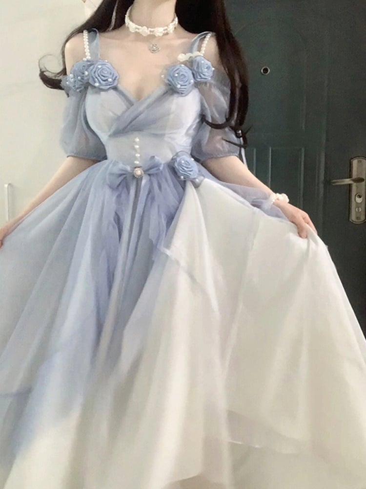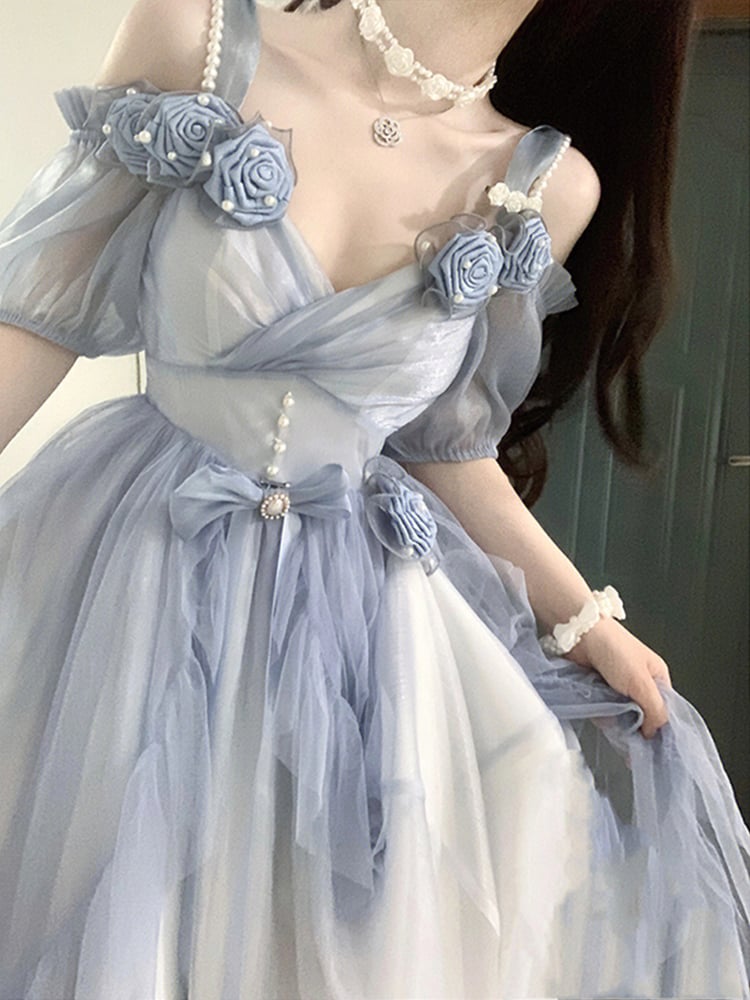 Sweet Elegant Princess Rose Flower Princess Fairy Wedding Dress