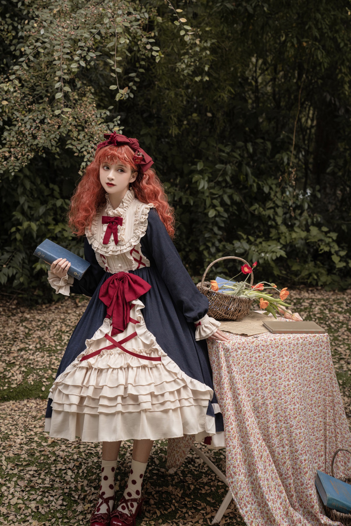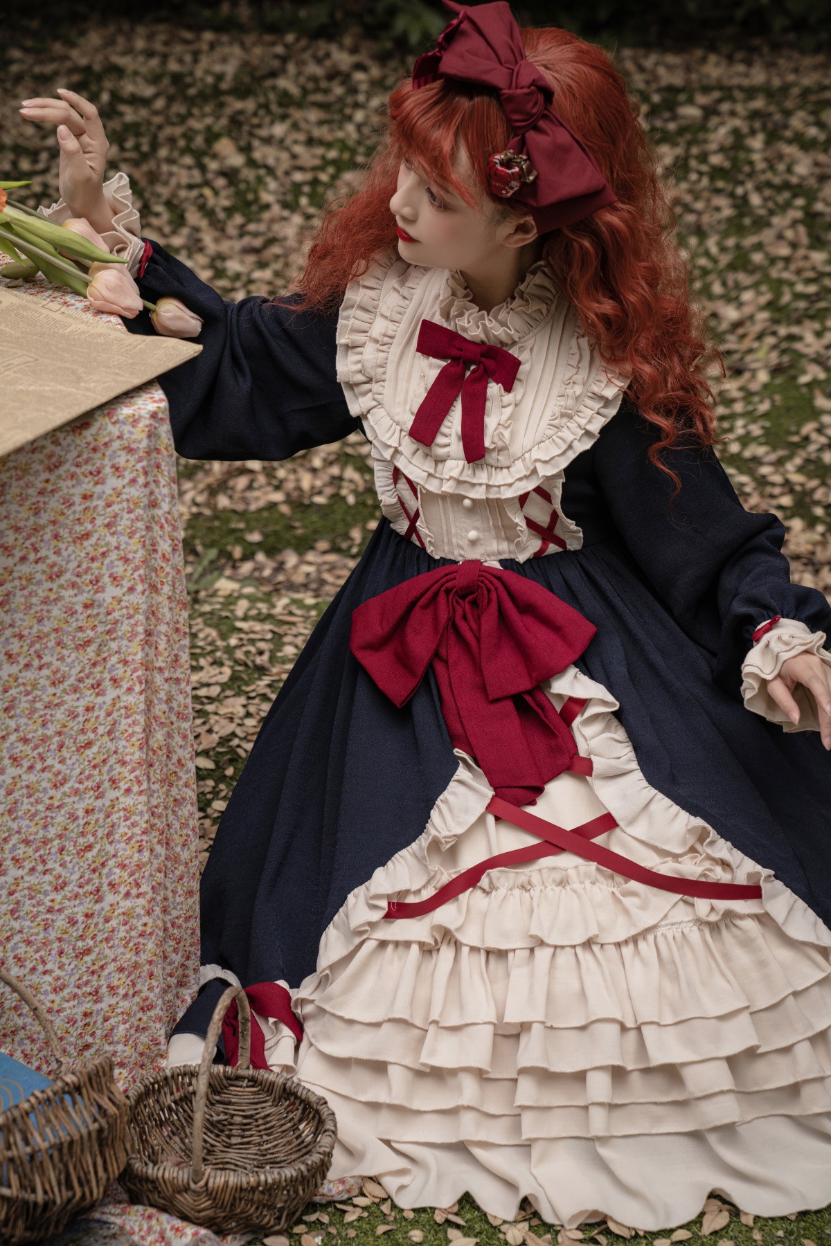 French European Style Gothic Elegant Fae Princess Black Red Pink White Ribbon Dress