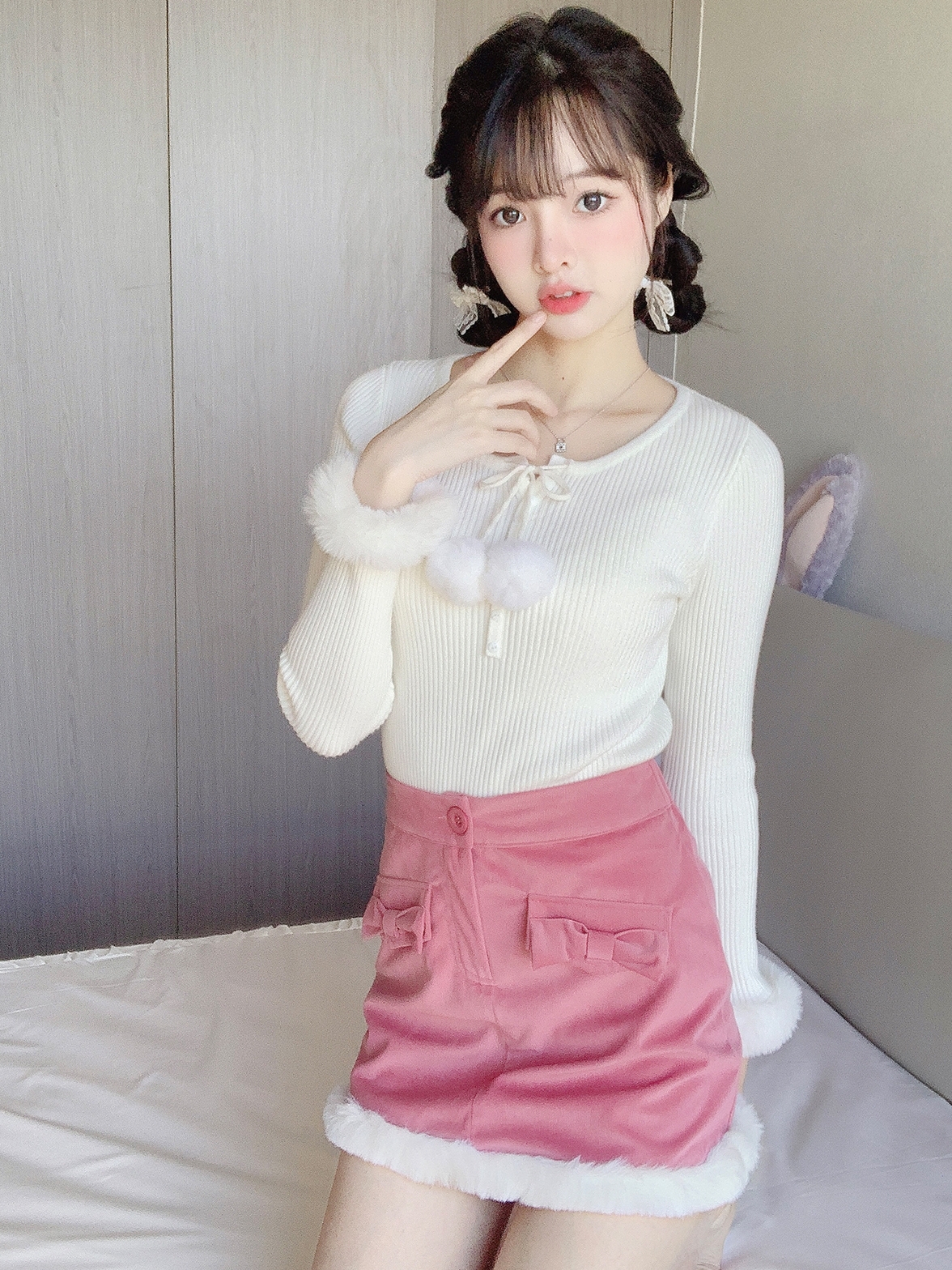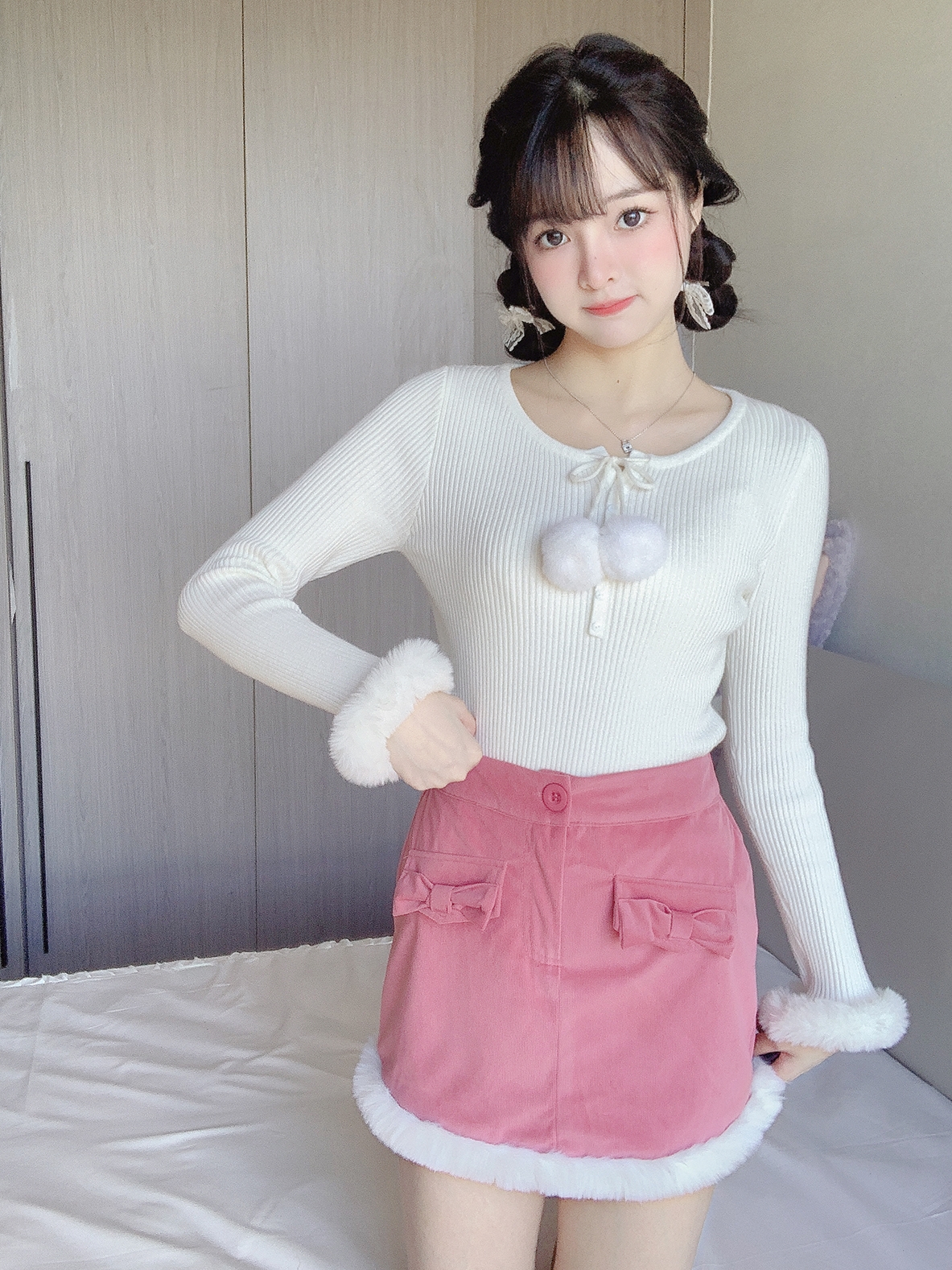Korean Girl Women Cute Fashion Bow Pink Velvet Cool Chic Summer Spring Autumn Winter Short Mini Skirt