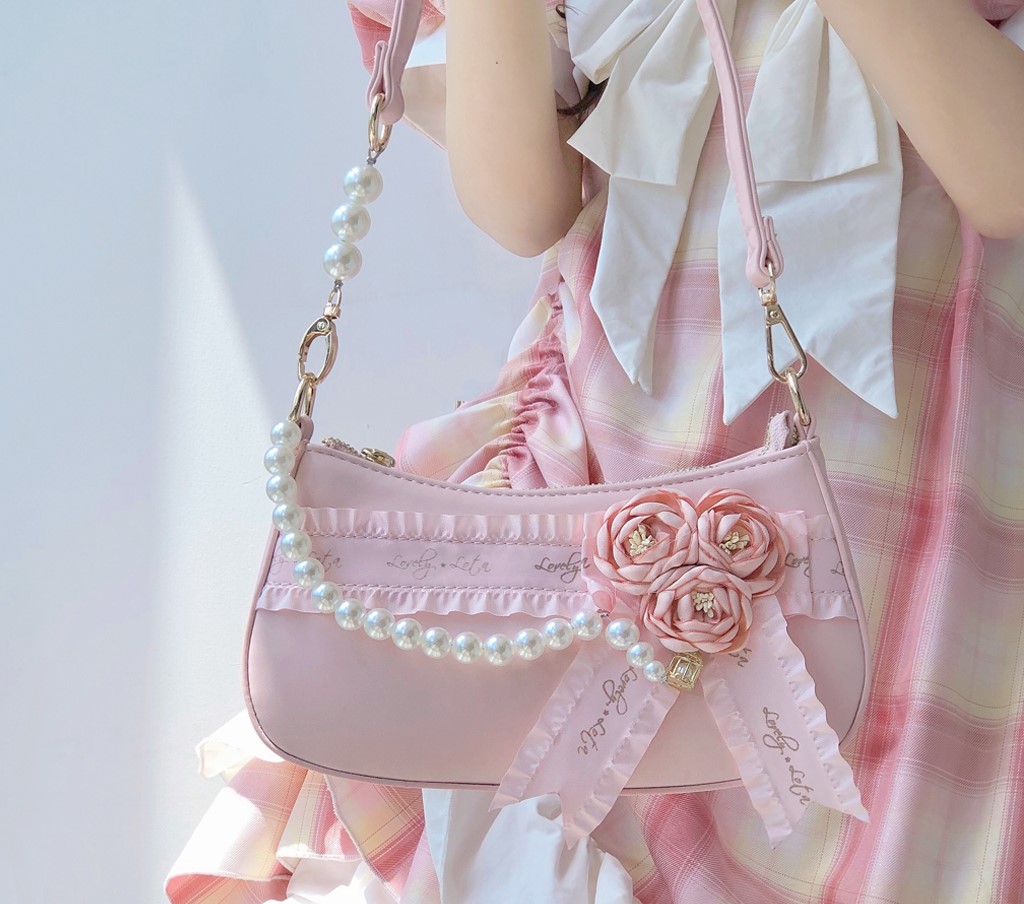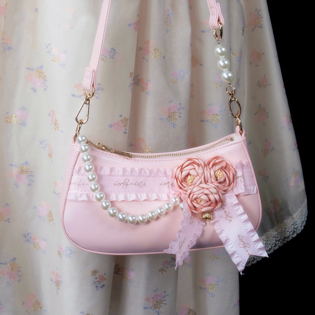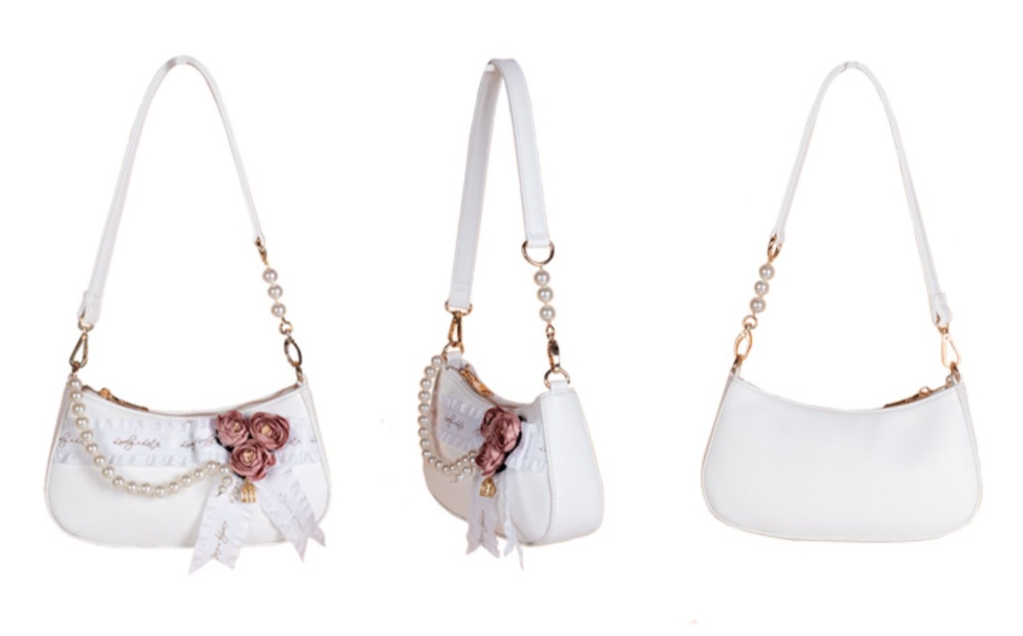 Sweet Heart Dream Rose Flower Shoulder White & Pink Underarm Bag