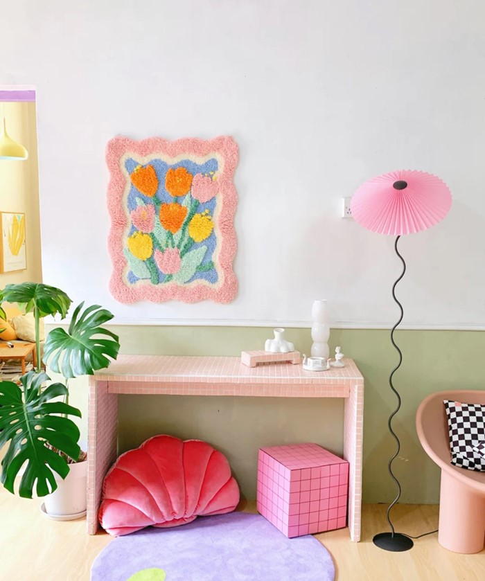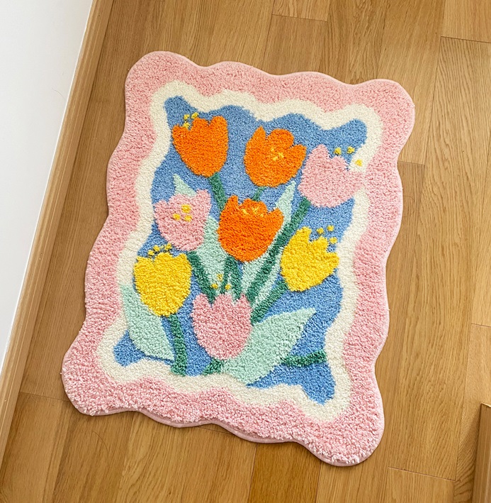 Colorful Vibrant Pink Frame Tulip Flowers Garden Home Nature Soft Mat Rugs Carpets Bedroom Decor