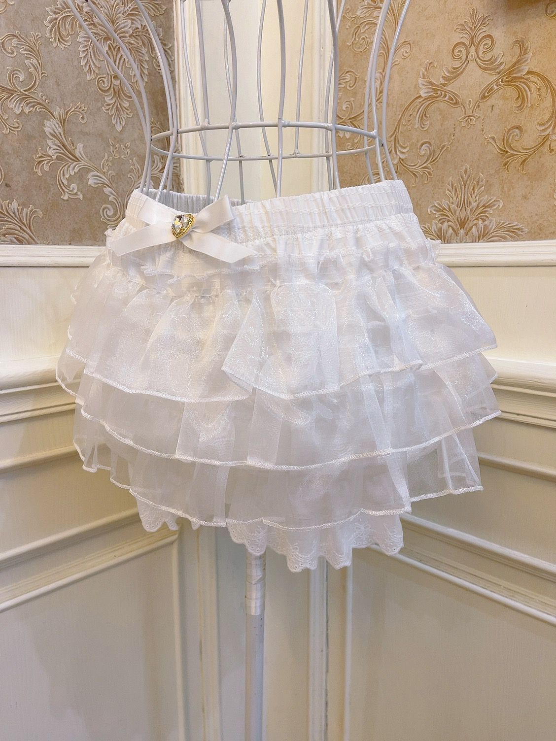 Sweetheart Princess Bow Layered Ruffled White Pink Gathered Short Skirt