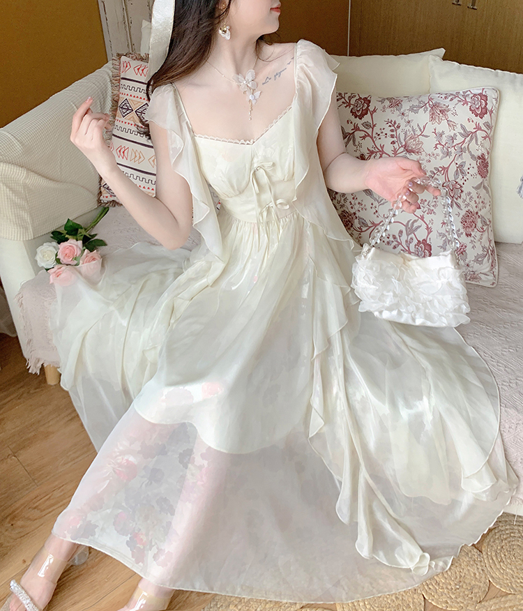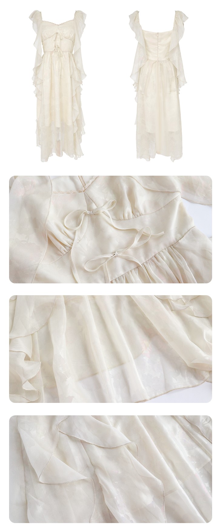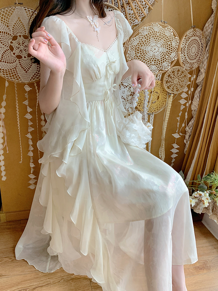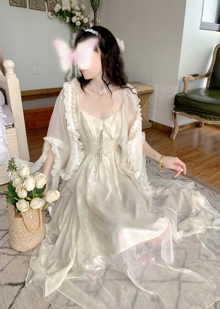 White Yellow Golden Tulle Layered Princess Elegant Classic Long Dress