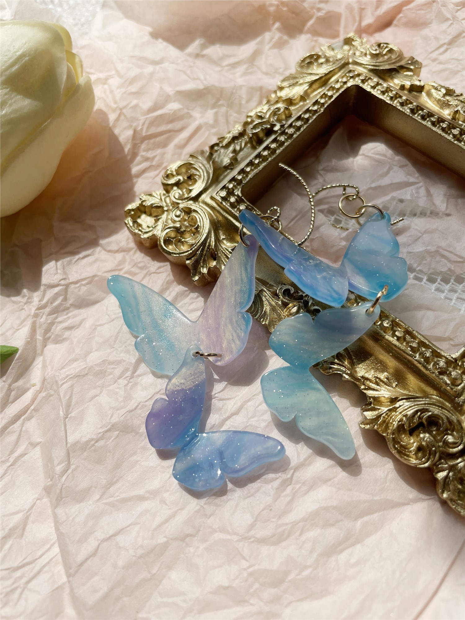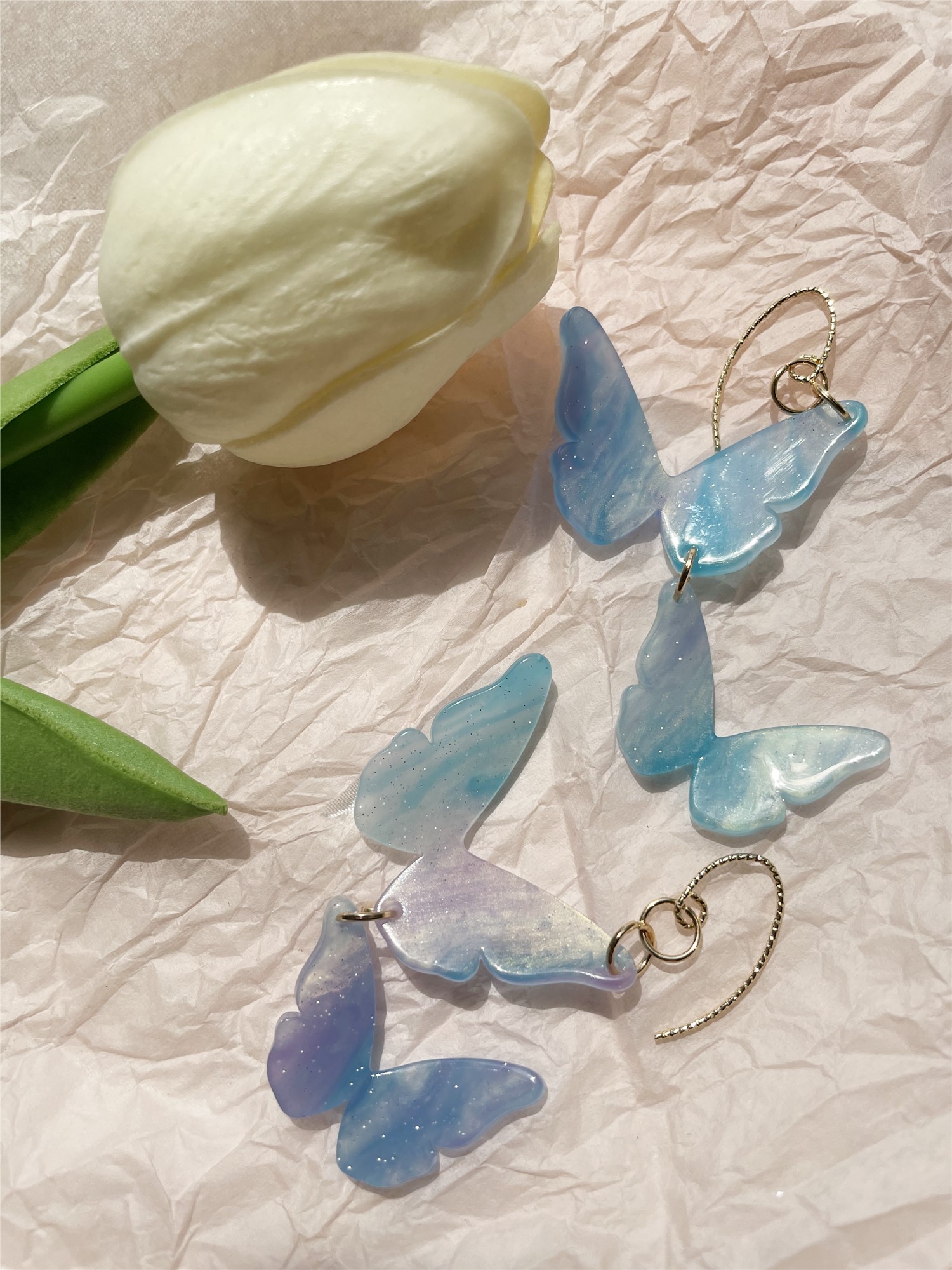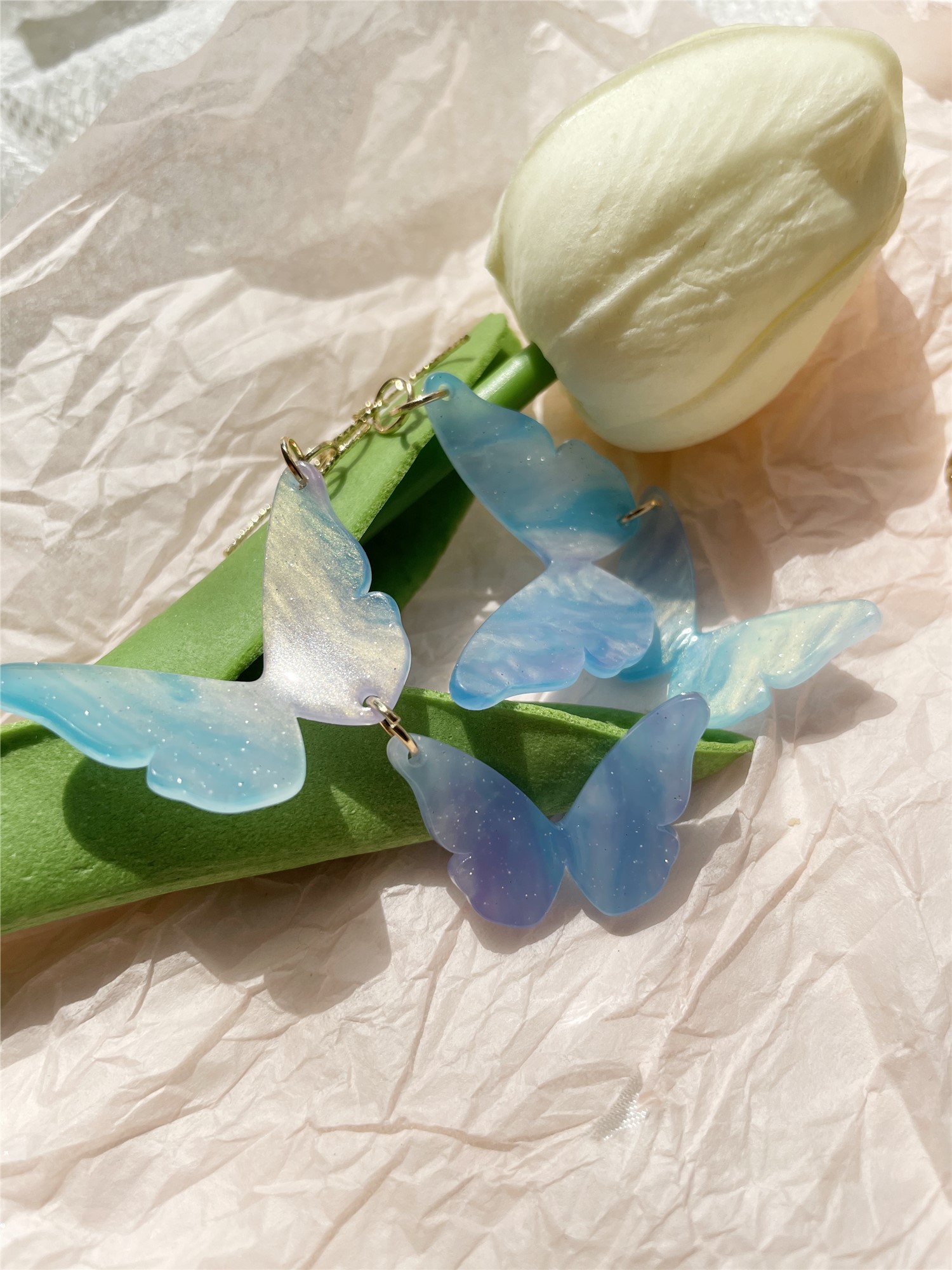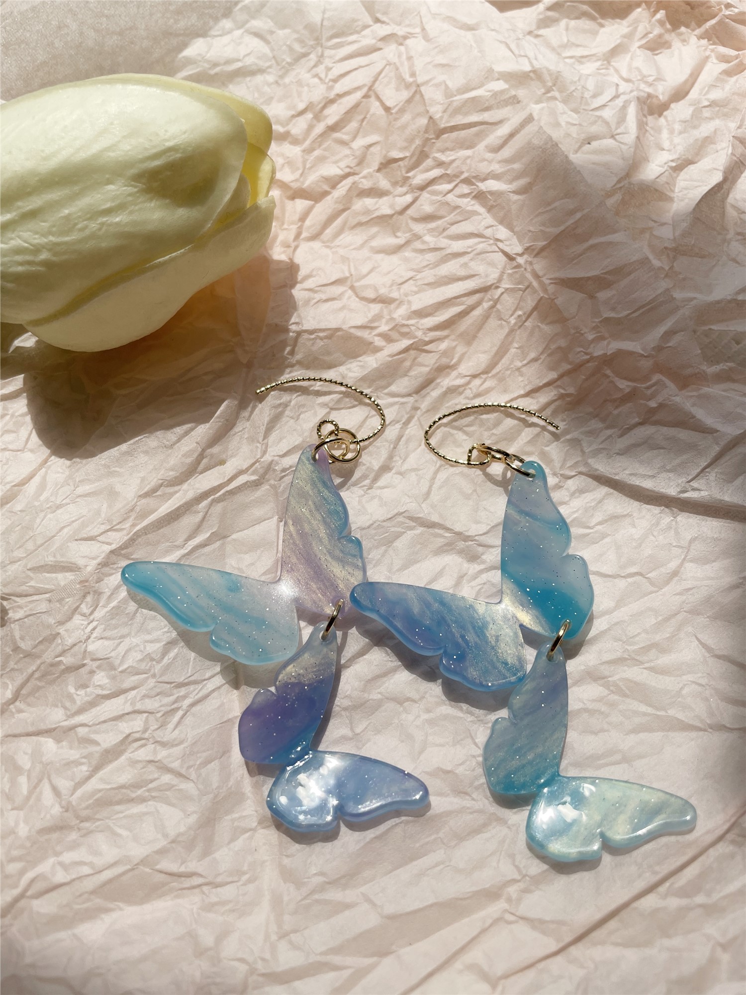Fantasy Dreamy Blue Symphony Butterfly Long Beautiful Women Earrings Earclips