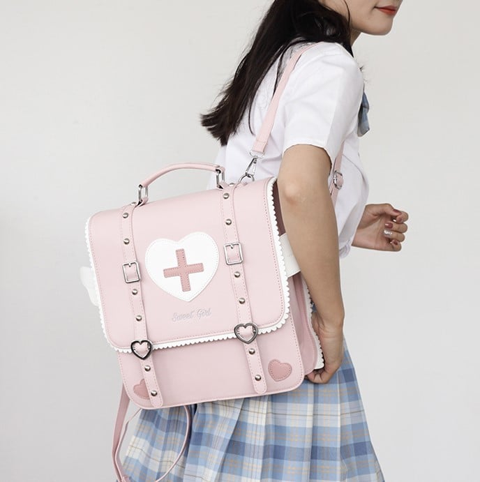 Japanese School Girl College Student Sweet Angel Heart Tiny Wings Messenger Bag Backpack