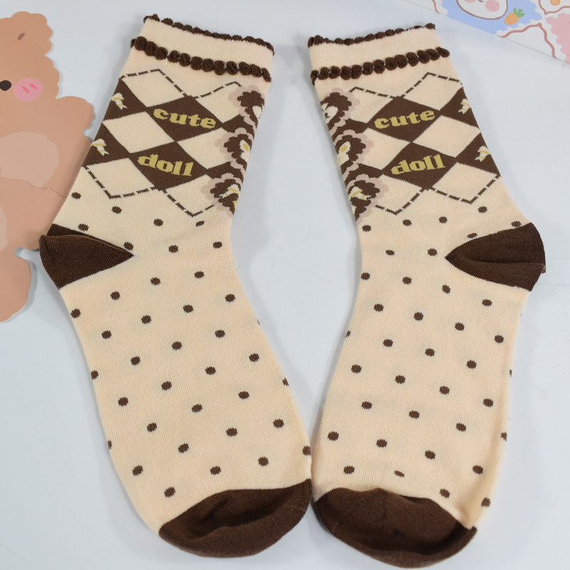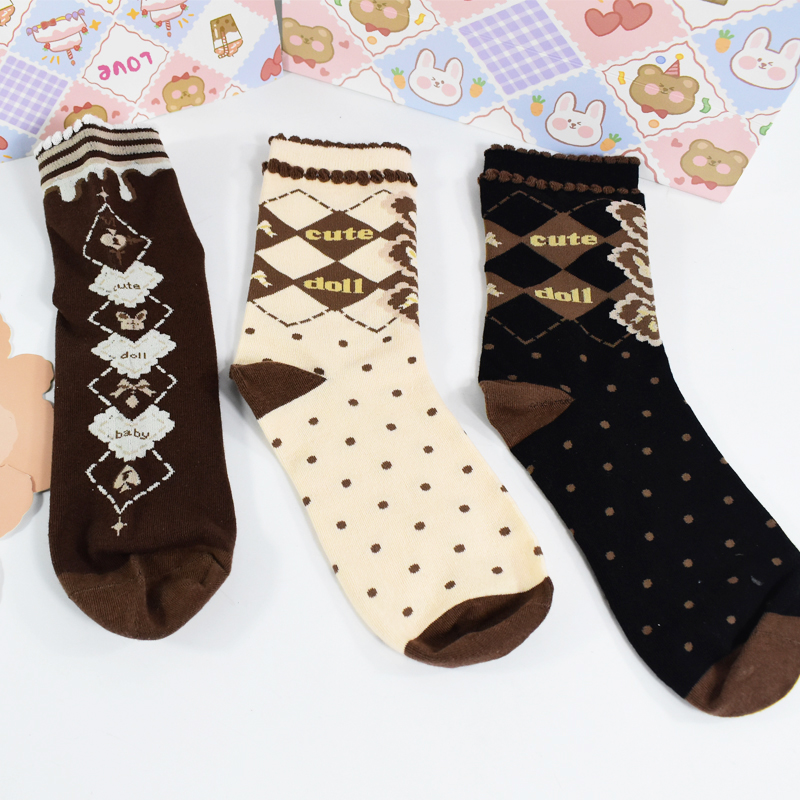 Chocolate Sweet Cute Doll Brown Lace Polka Dot Socks Set