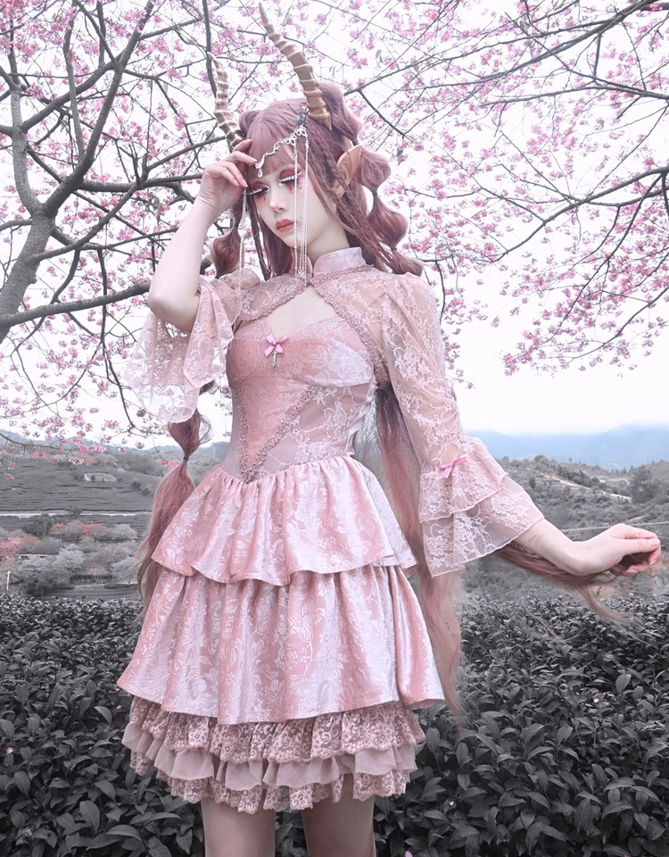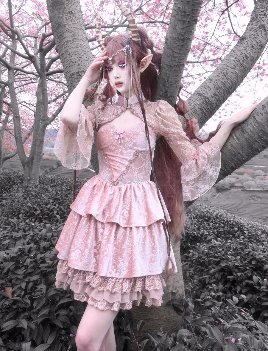 Guardian of Sakura Tress Gothic Lace Velvet Pink Cake Short Dress