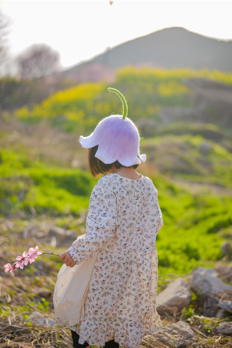 Handmade Bell Orchid Lily of Valley Purple Fairy Flower Cute Wool Baby Kids Hat