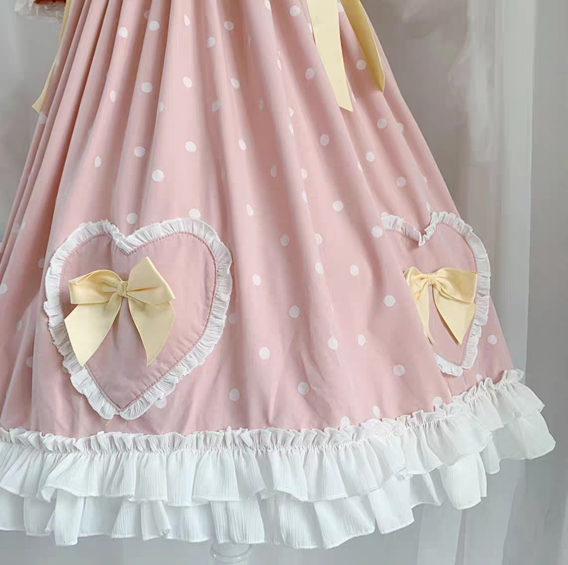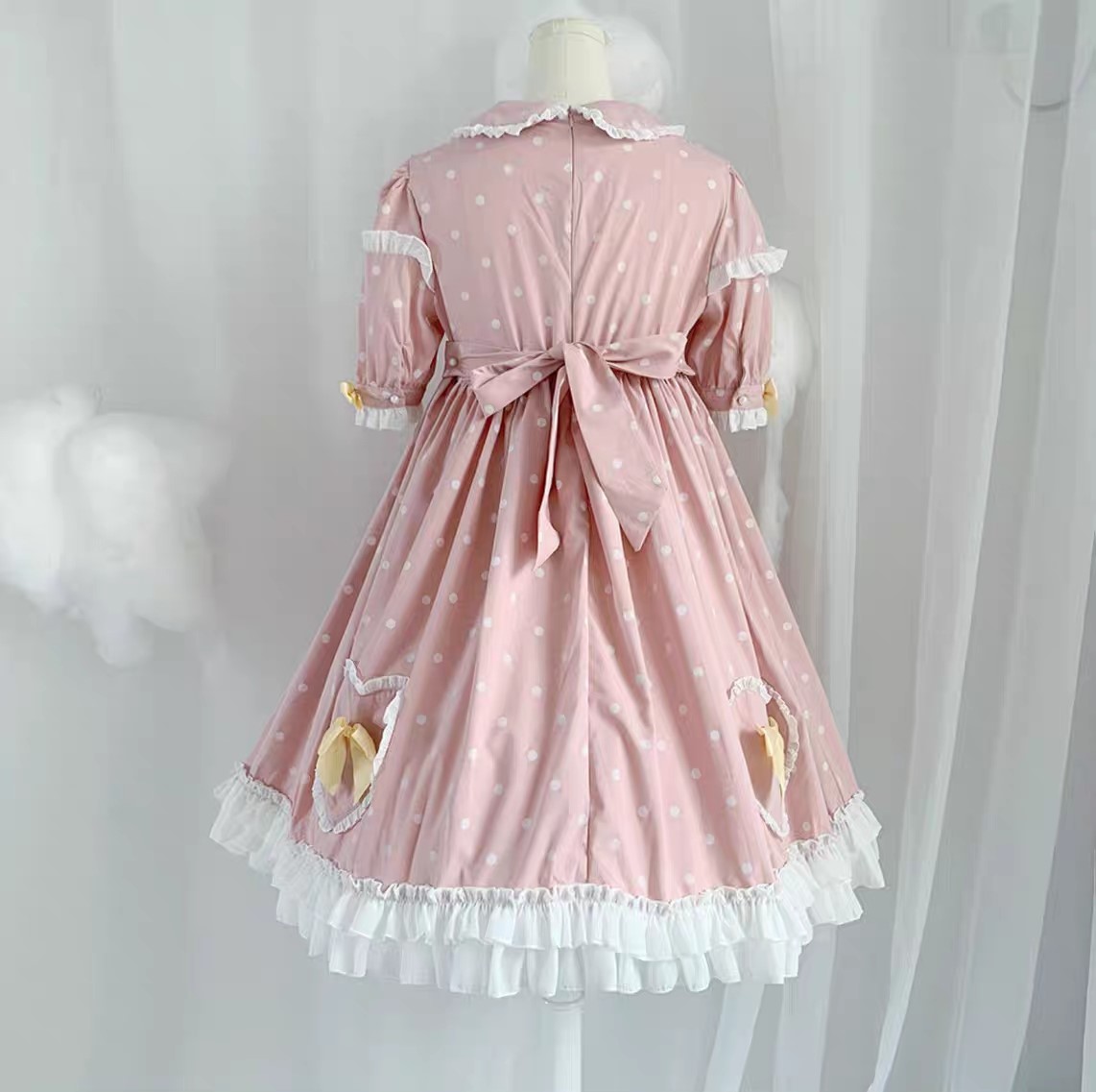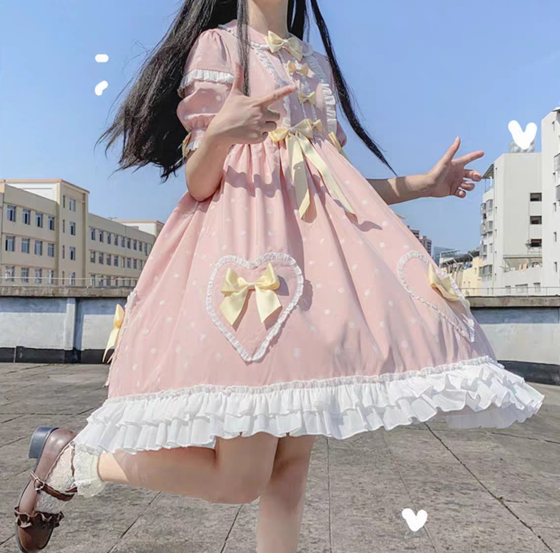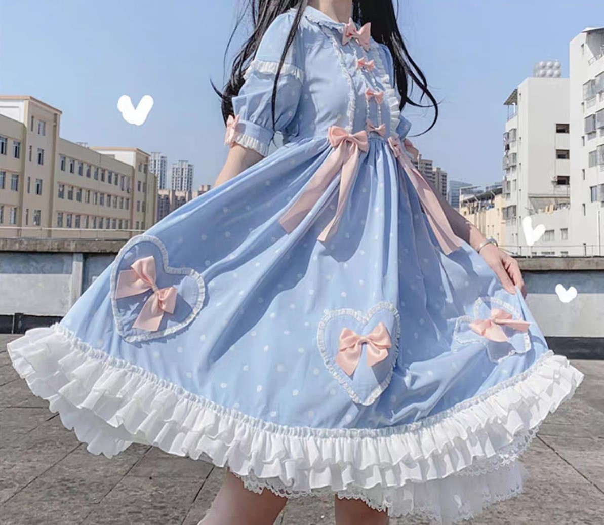 Plus Size Women Cute Japanese Girl Summer Bow Candy Princess Blue & Pink Dress