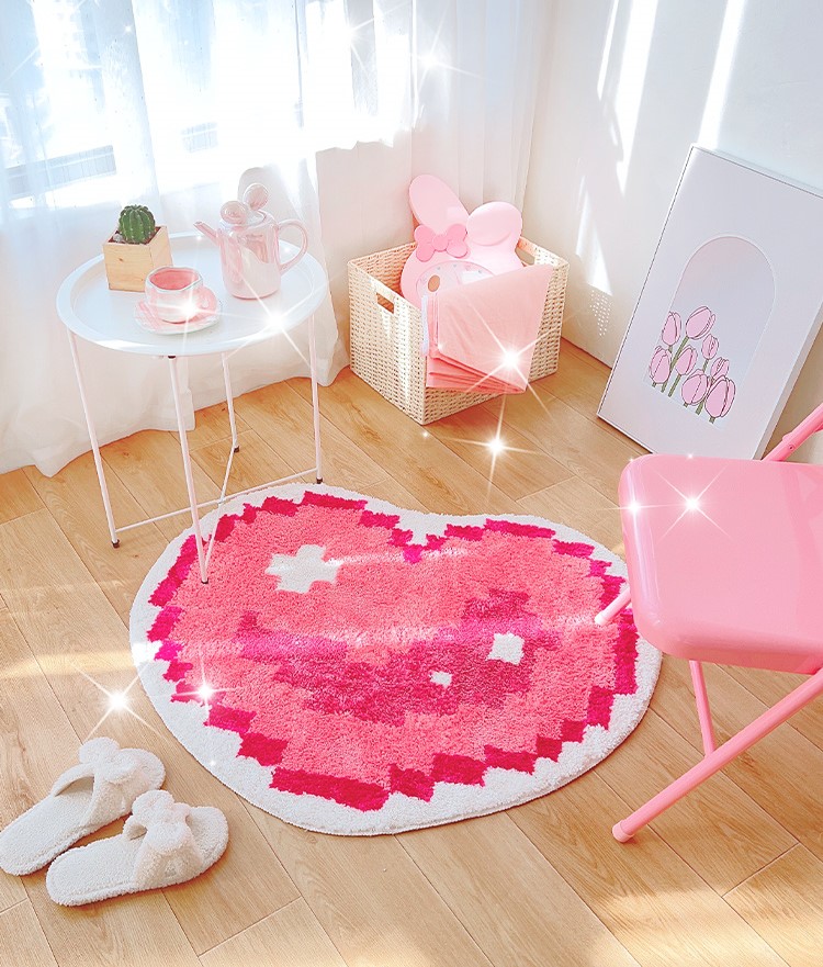 E Girl Pixel Art Heart Cute Modern Soft Mat Rugs Carpets Bedroom Decor
