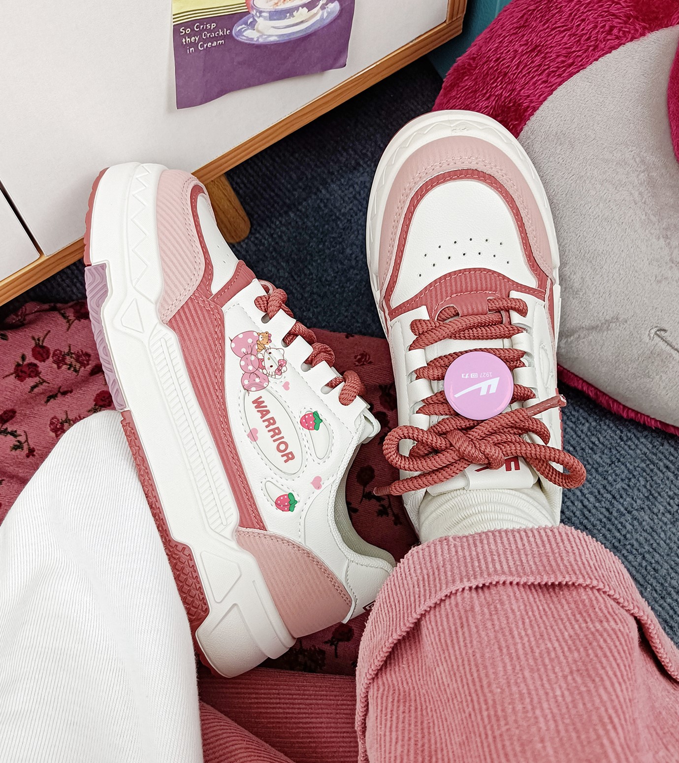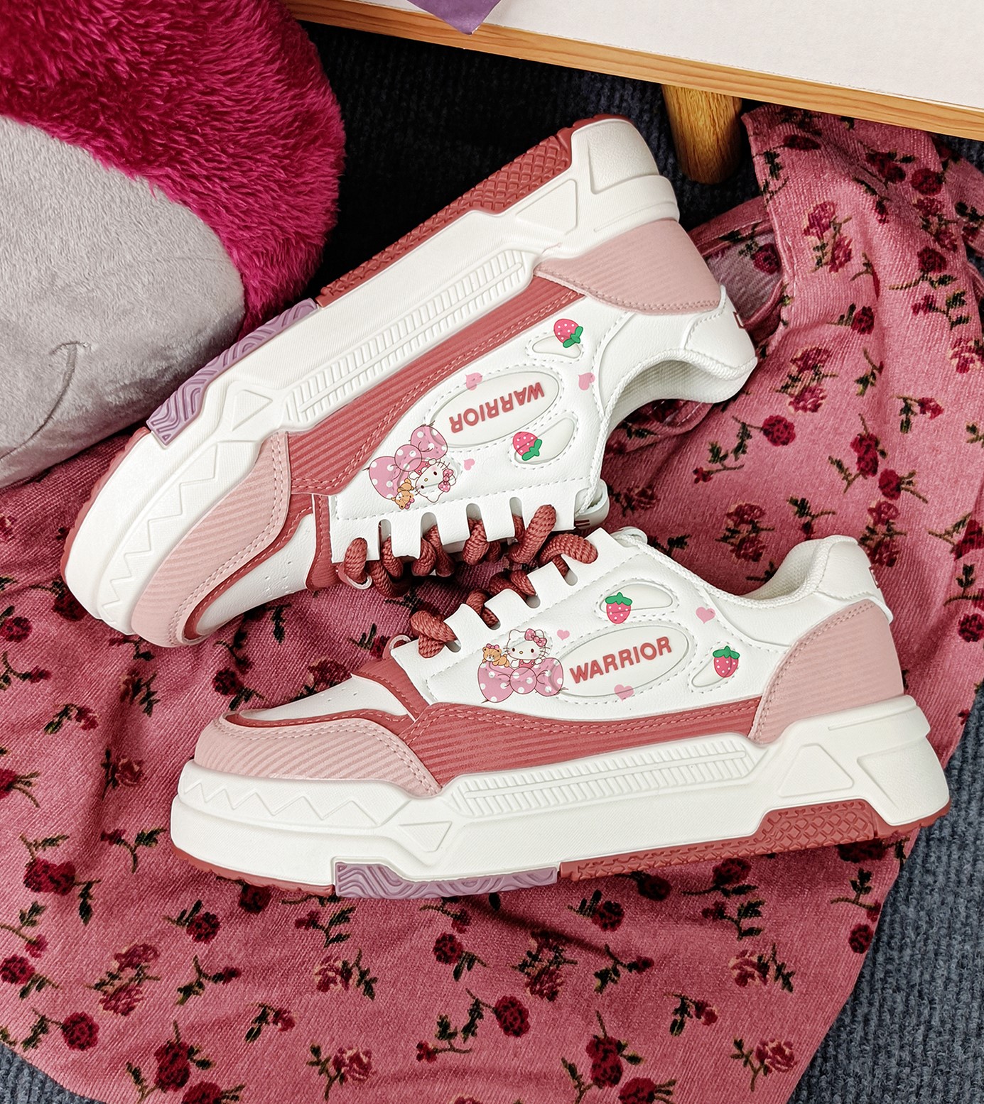 Kitty Student Sweet Girl Cute Strawberry White Pink Red Thick Soles Sneakers Sports Running Shoes