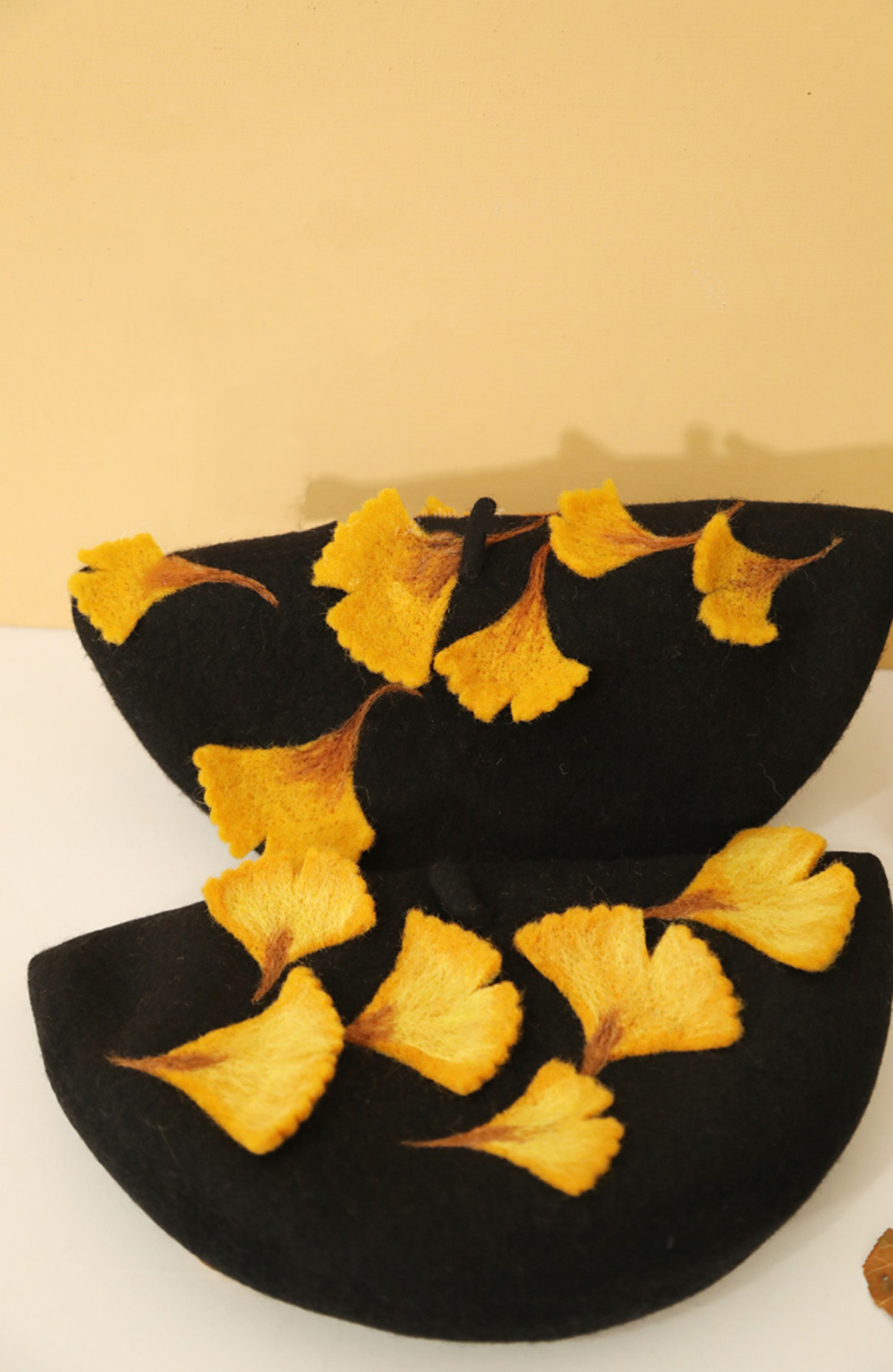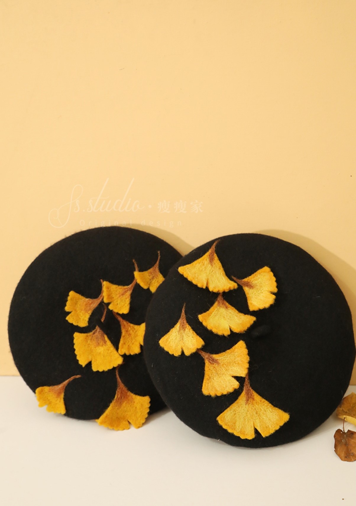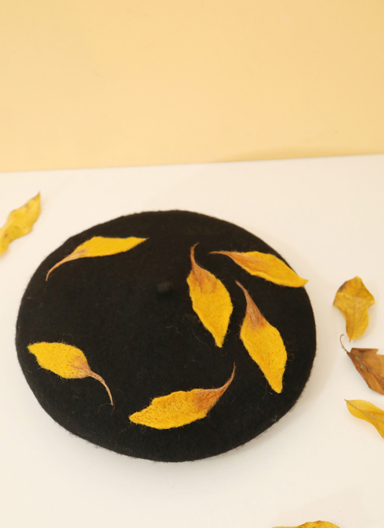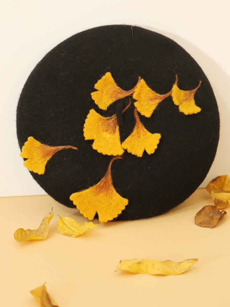 Cute Handmade Ginkgo Leaf & Fallen Autumn Leaves Wool Beret Hat